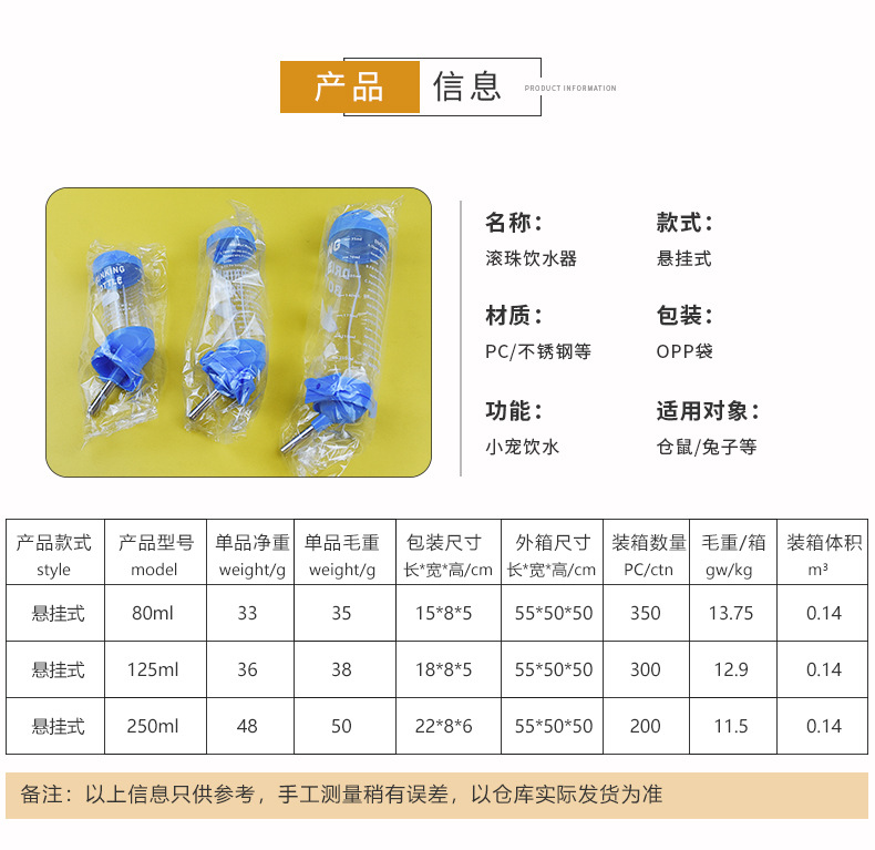 새로운 햄스터 마시는 물병 네덜란드 돼지 황금 곰 공 주전자 물 공급 토끼 기니피그 애완 동물 마시는 주전자스토어 가기