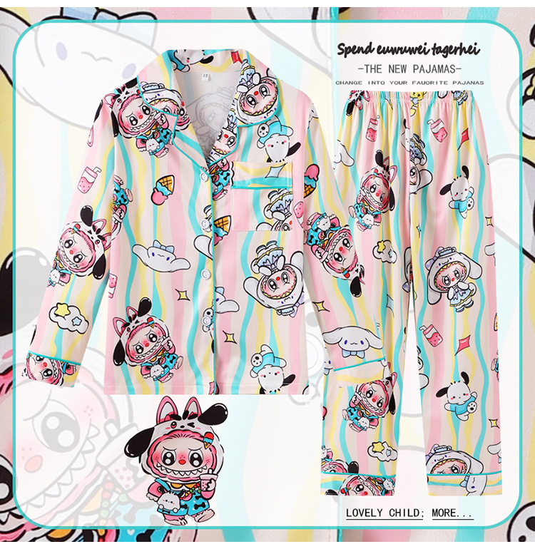 새로운 어린이 잠옷 세트 소년 카디건 긴팔 소녀 옷깃 파자마 큰 어린이 가을과 겨울 집 옷 도매스토어 가기