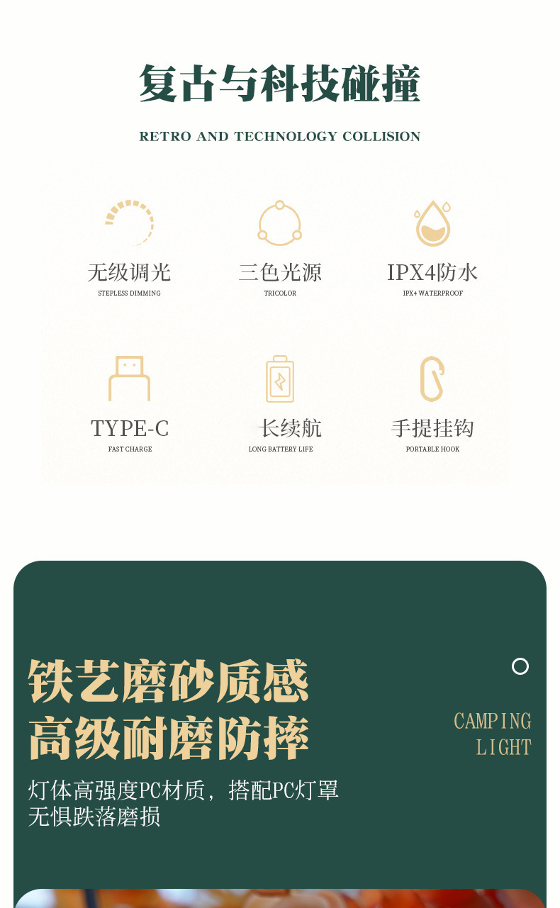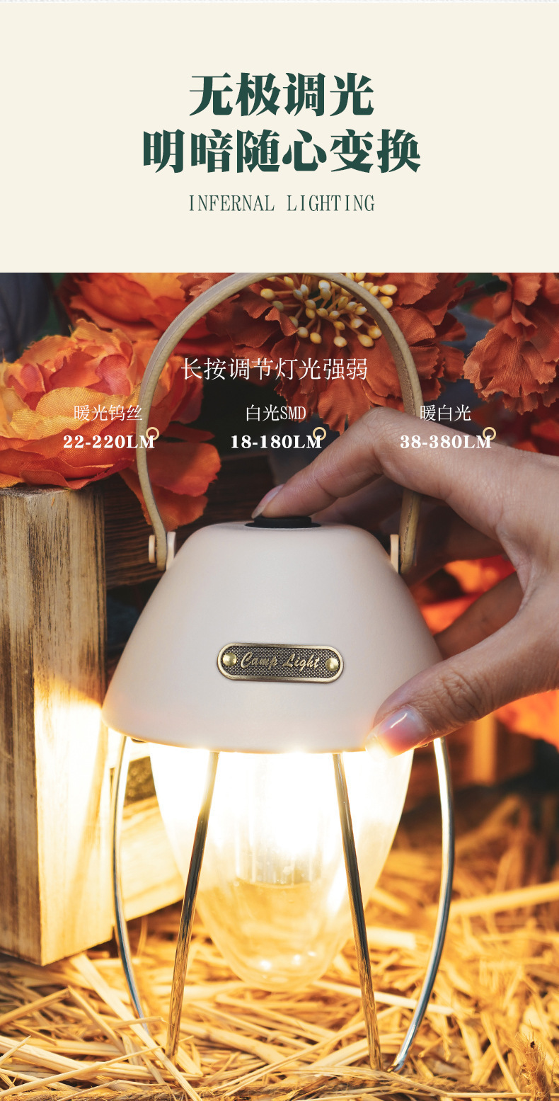 야외 분위기 센스 텐트 캠핑 조명 레트로 프레스 긴 내구성 조명 코트야드 파인얼 조명
