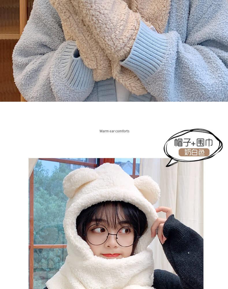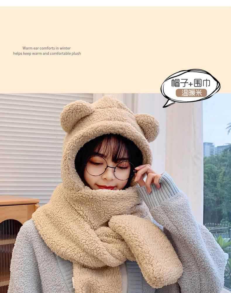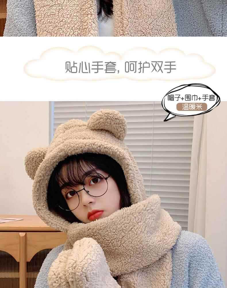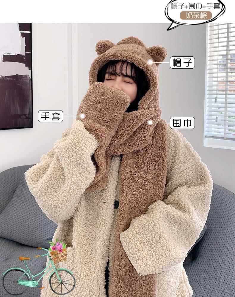 방한모자, 겨울철 사이클링 따뜻한 보조기구, 귀보호대, 곰 스카프, 장갑, 3종세트, 귀여운 스카프 모자