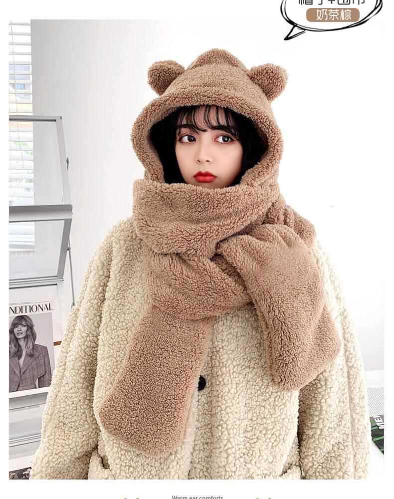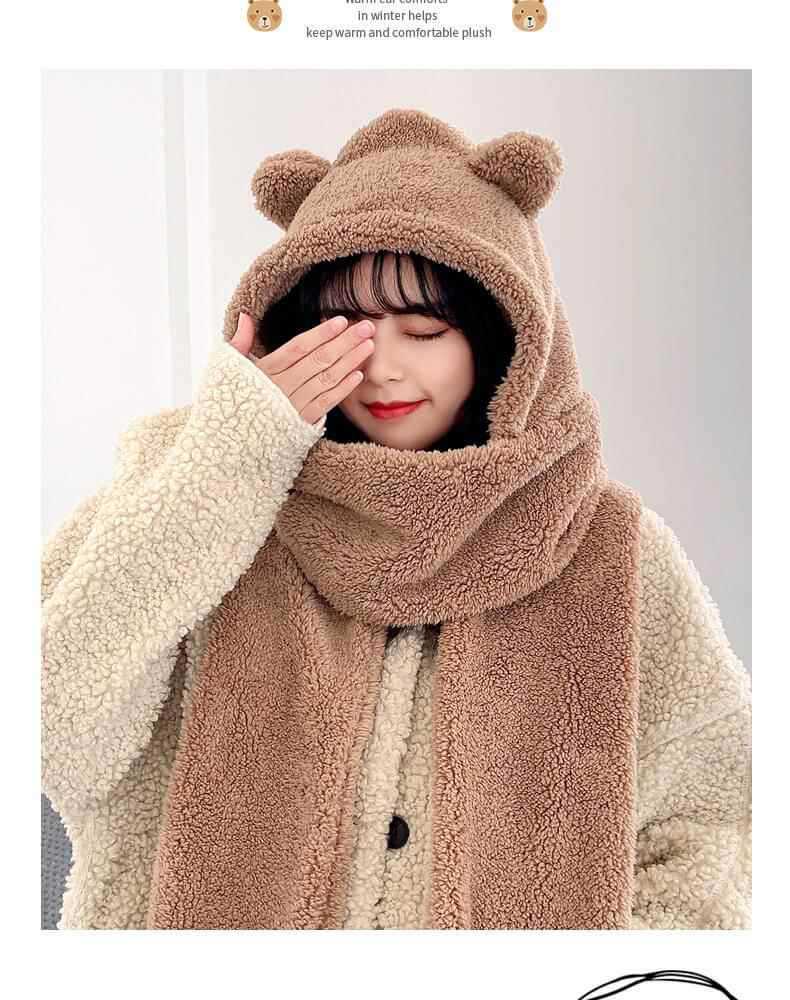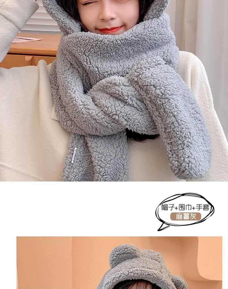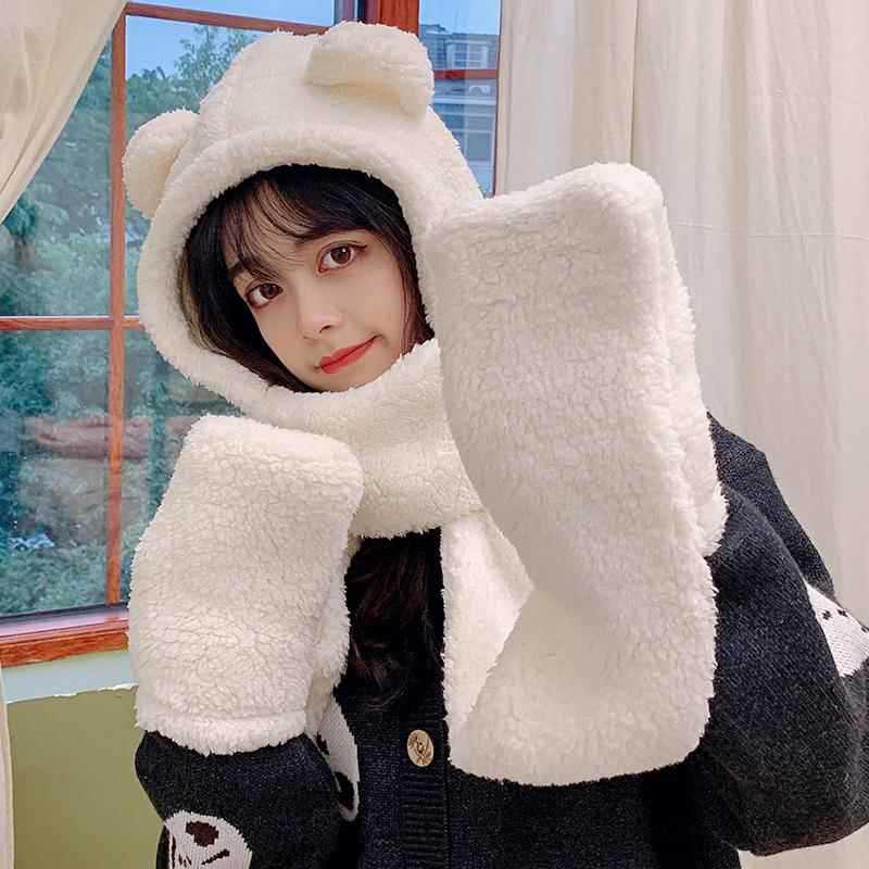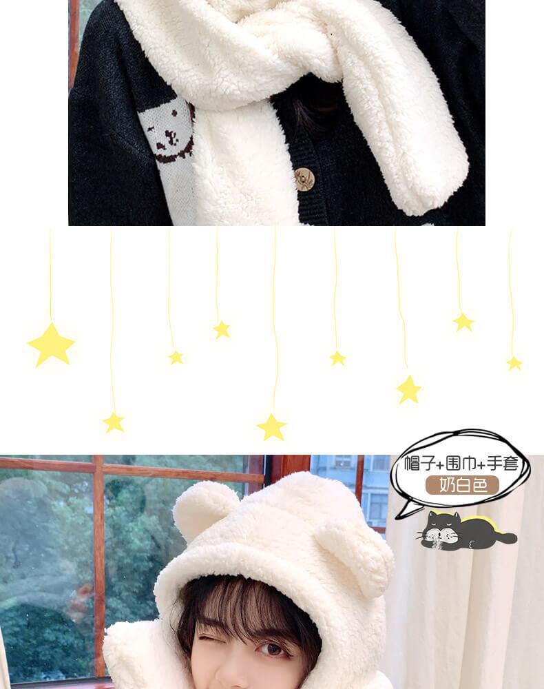 방한모자, 겨울철 사이클링 따뜻한 보조기구, 귀보호대, 곰 스카프, 장갑, 3종세트, 귀여운 스카프 모자