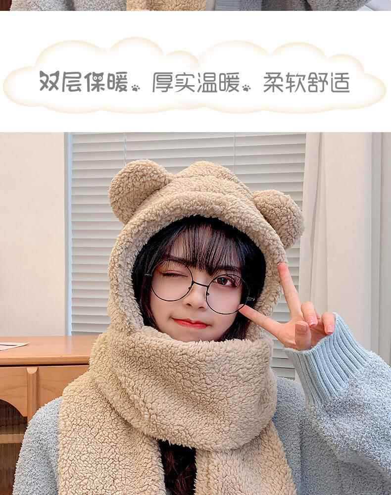 방한모자, 겨울철 사이클링 따뜻한 보조기구, 귀보호대, 곰 스카프, 장갑, 3종세트, 귀여운 스카프 모자스토어 가기