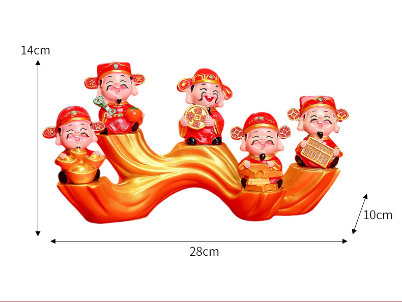 부의 새로운 신 수지 공예 자동차 장식품 장식 5 방향 부의 신 데스크탑 작은 장식품 창조적 인 부의 신