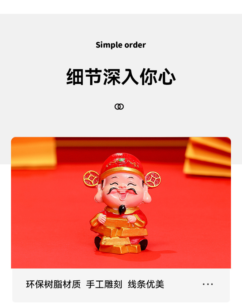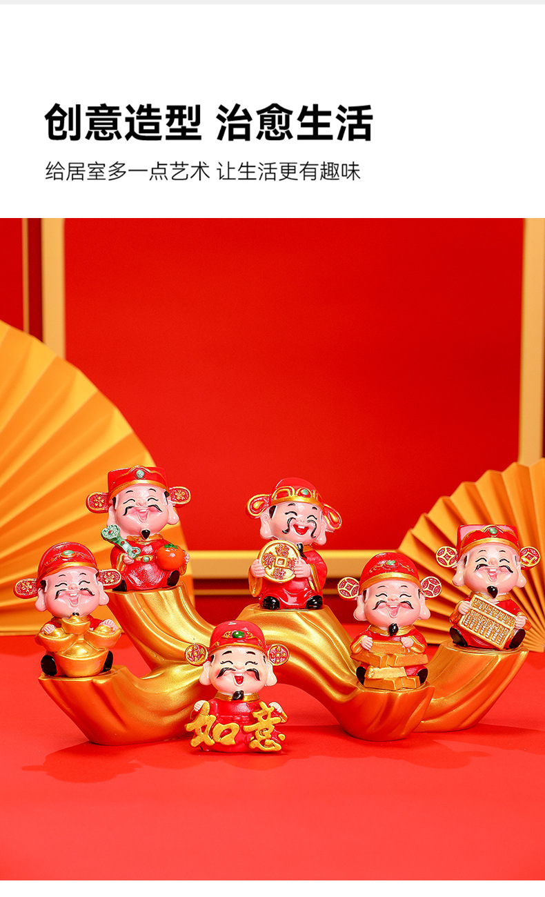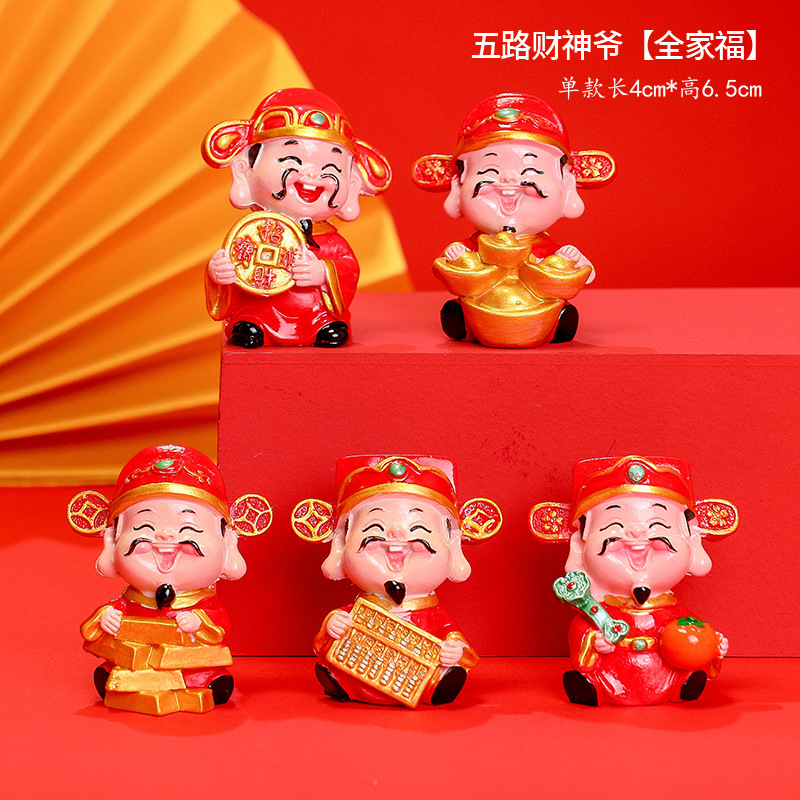 부의 새로운 신 수지 공예 자동차 장식품 장식 5 방향 부의 신 데스크탑 작은 장식품 창조적 인 부의 신스토어 가기