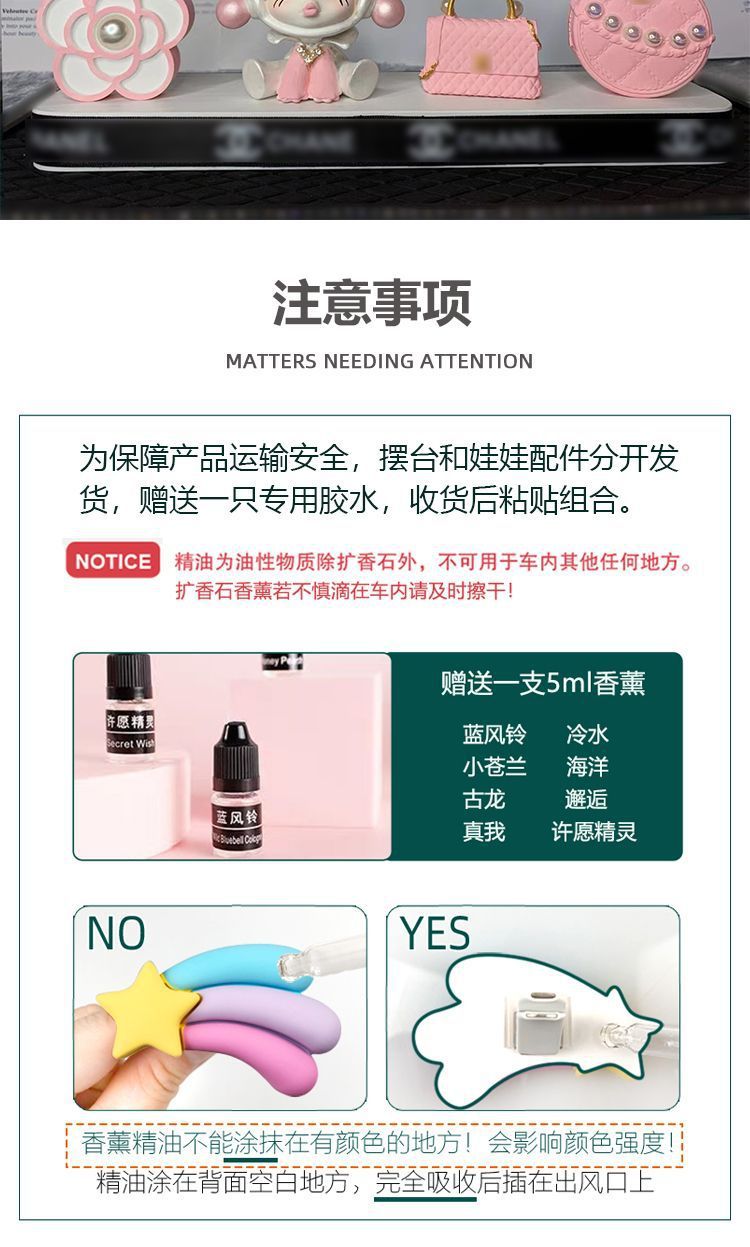 아기 가방 자동차 아로마 테라피 자동차 향수 확장 돌 지속적인 빛 향수 센터 콘솔 장식품