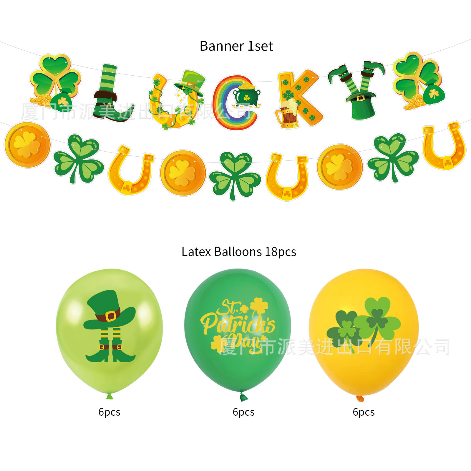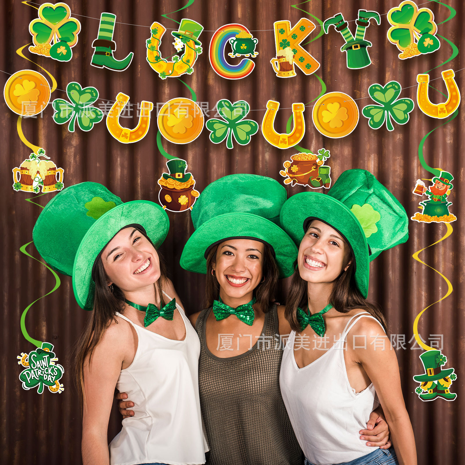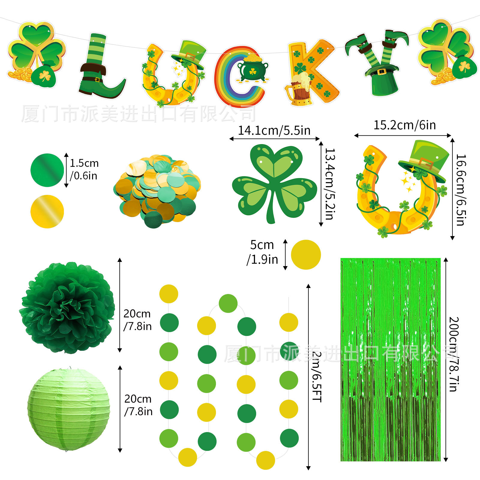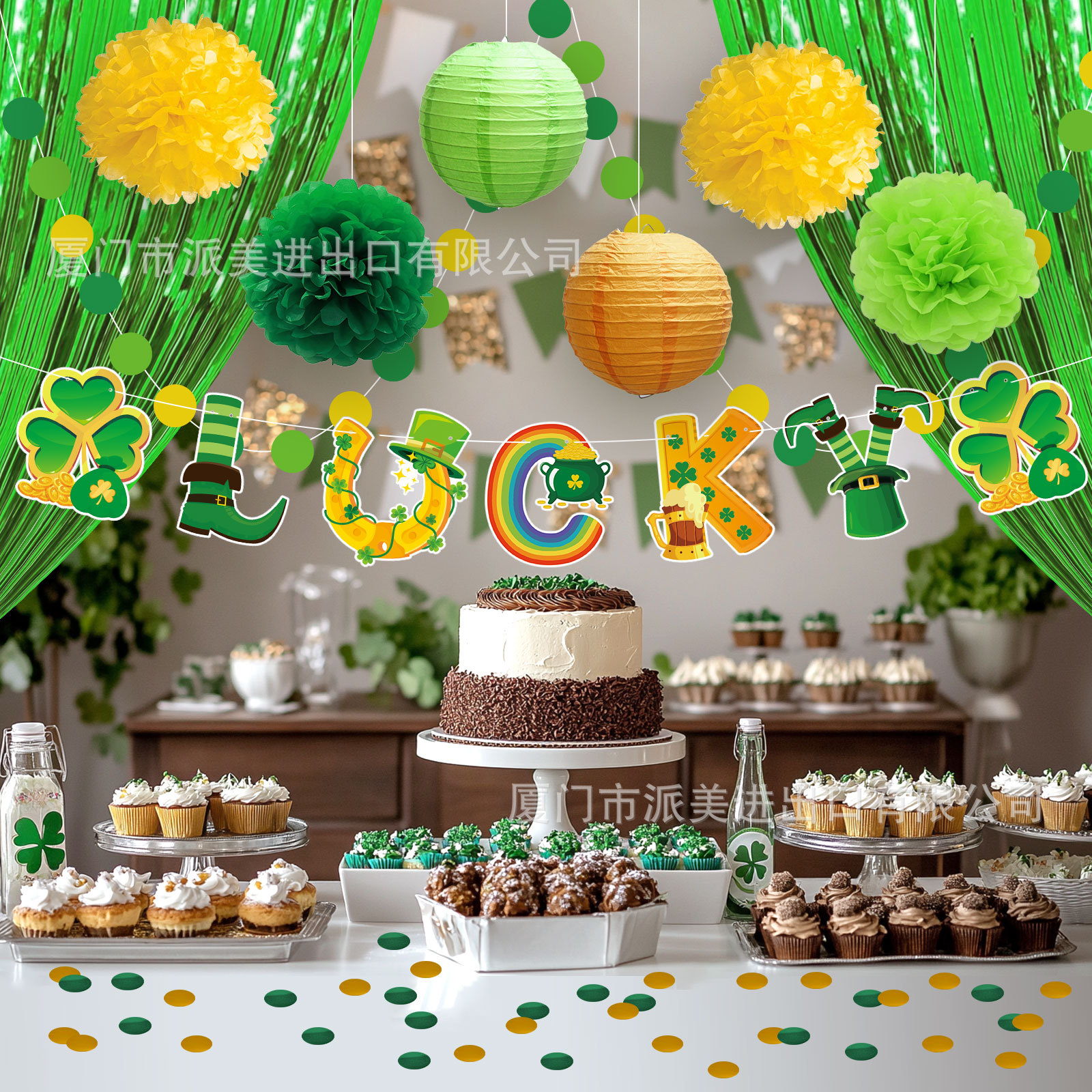 국경 성 패트릭의 날 테마 휴일 축하 파티 장식 배경 벽 레이아웃 깃발 사탕 상자 나선형