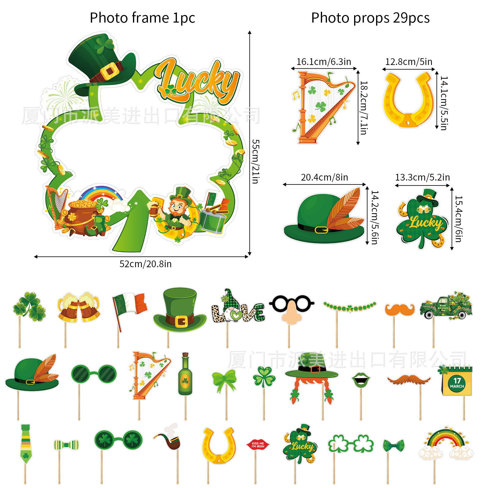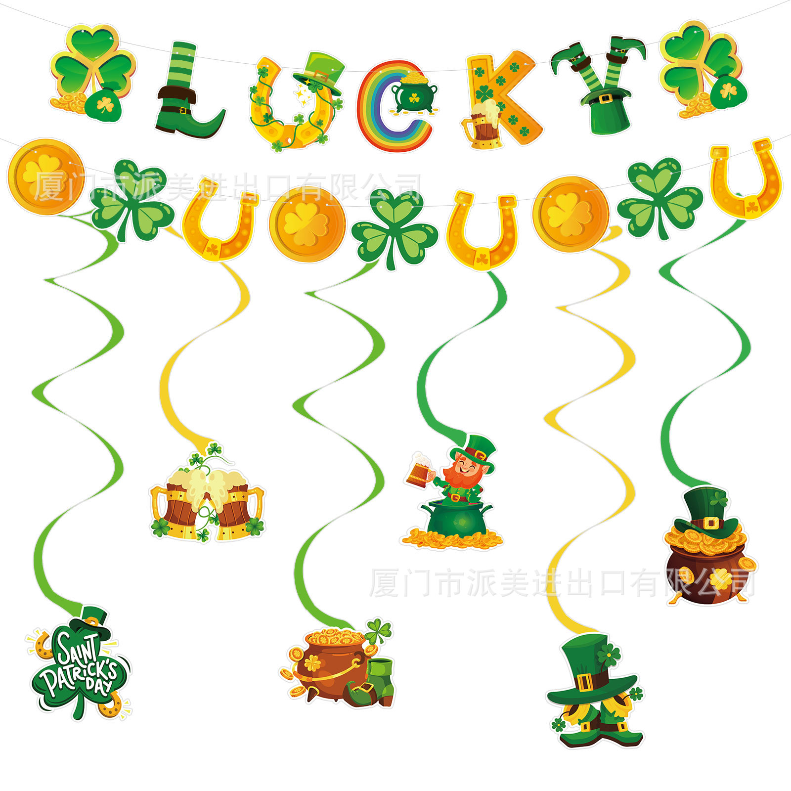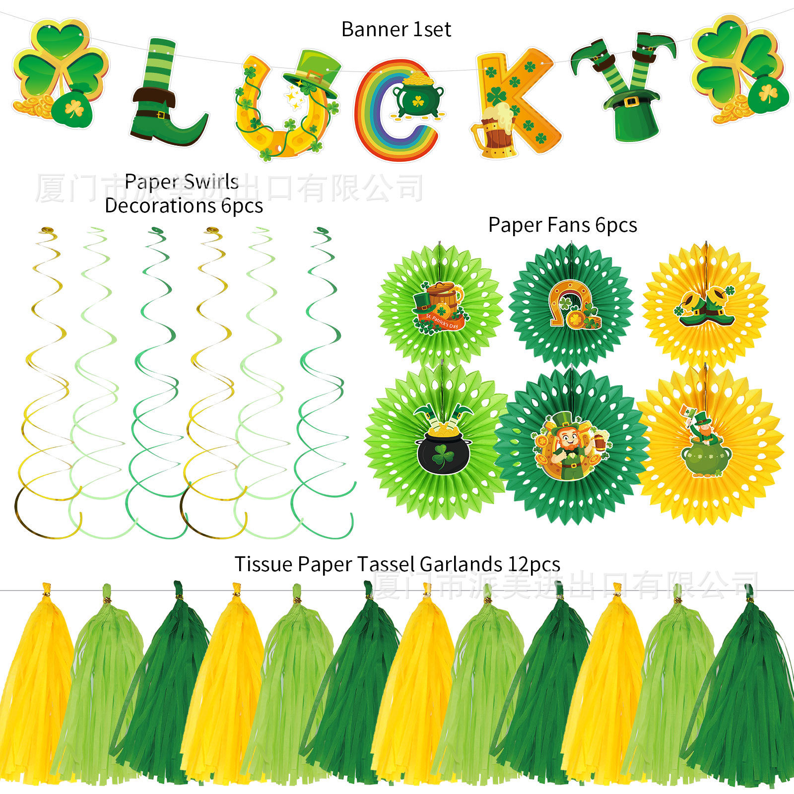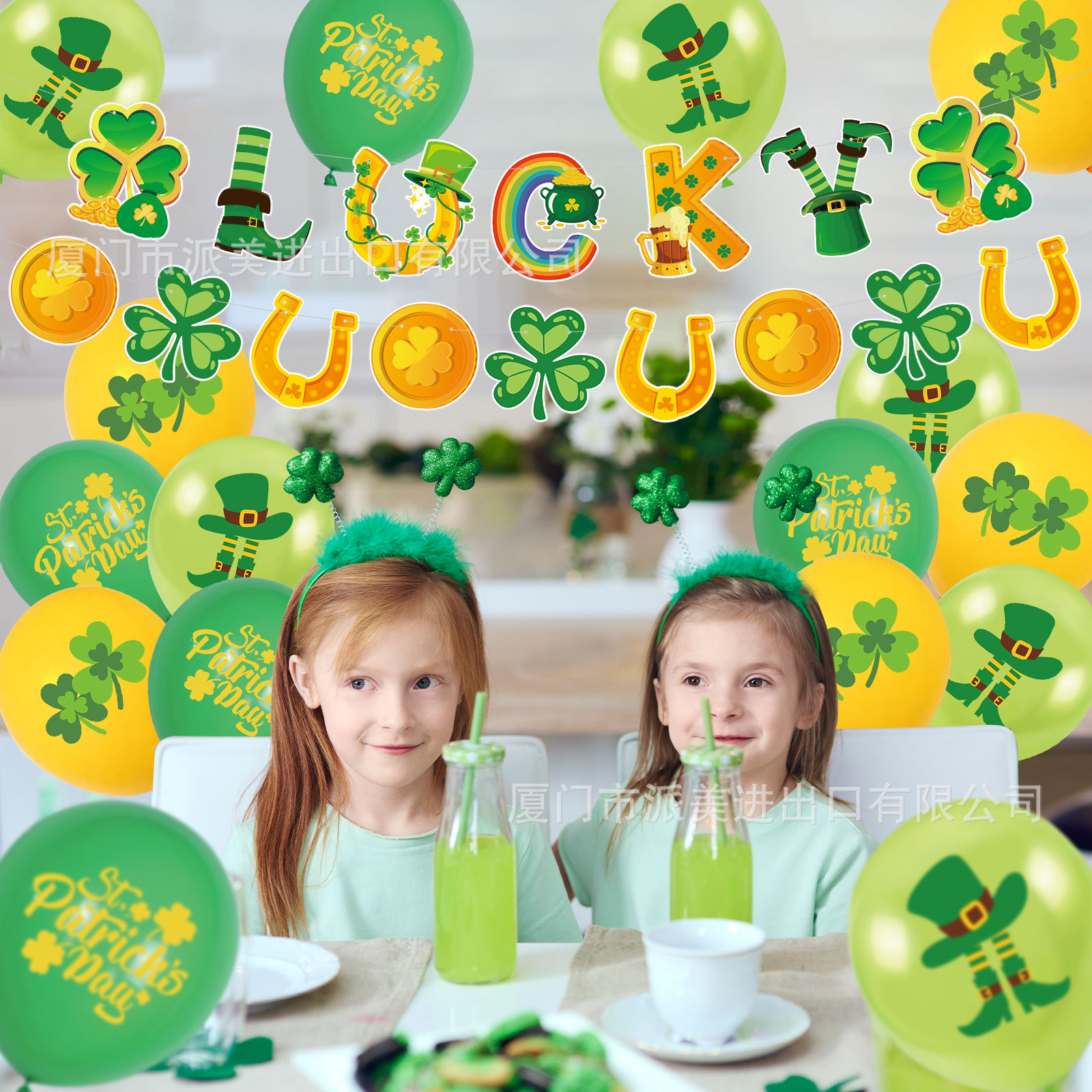국경 성 패트릭의 날 테마 휴일 축하 파티 장식 배경 벽 레이아웃 깃발 사탕 상자 나선형