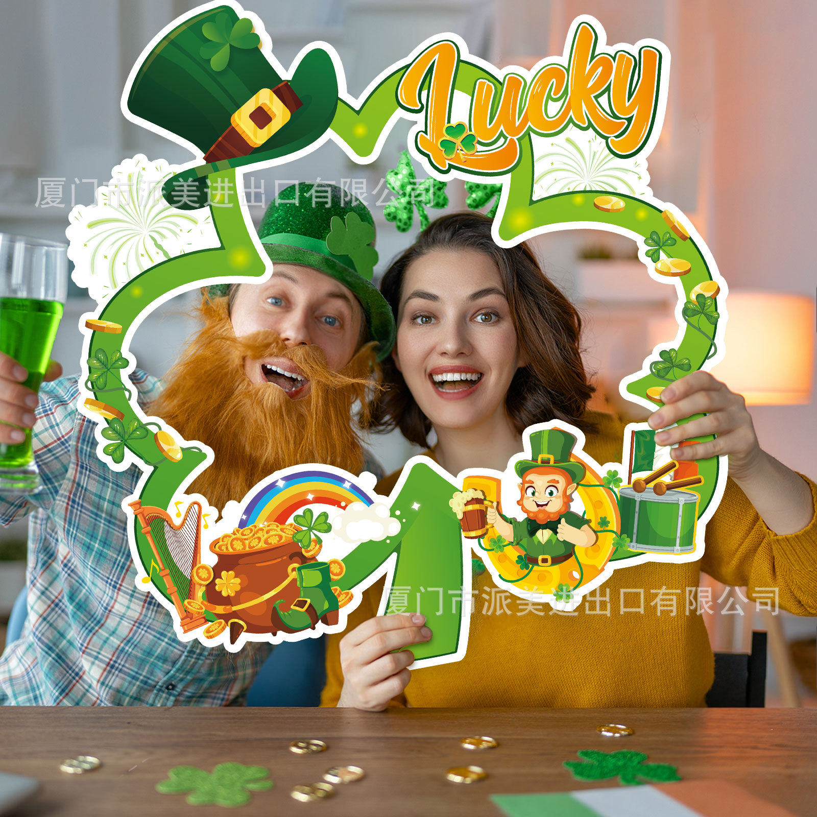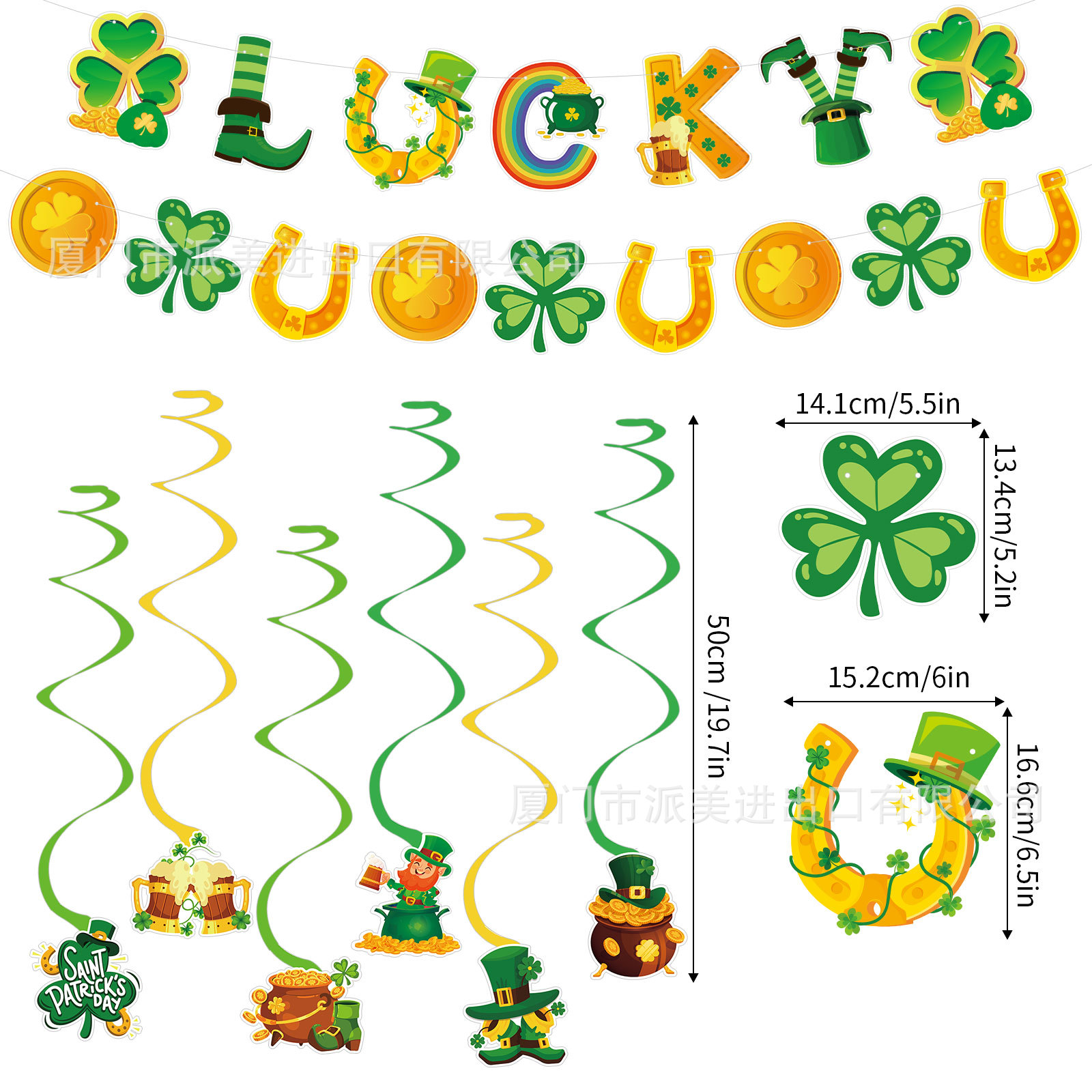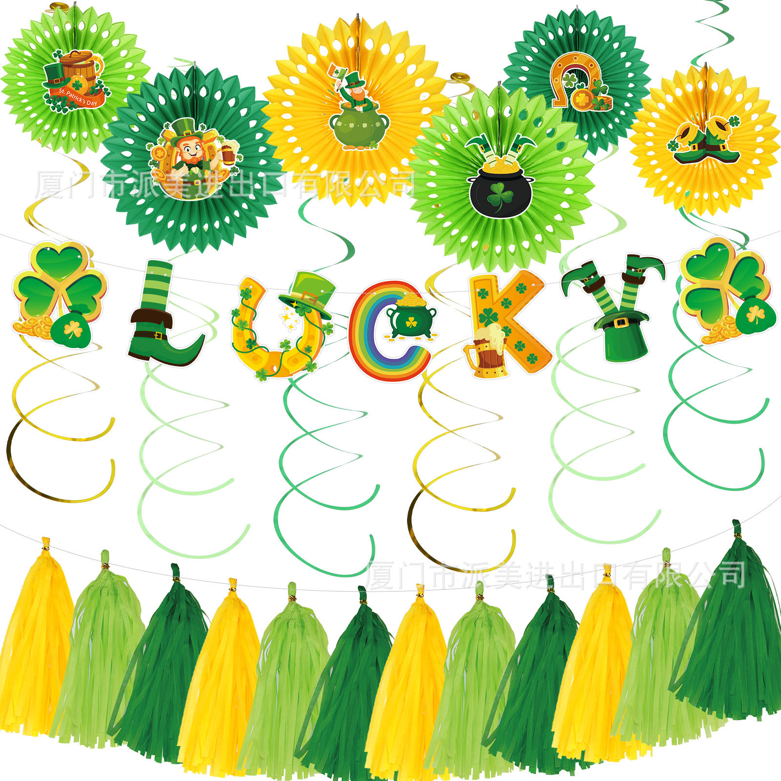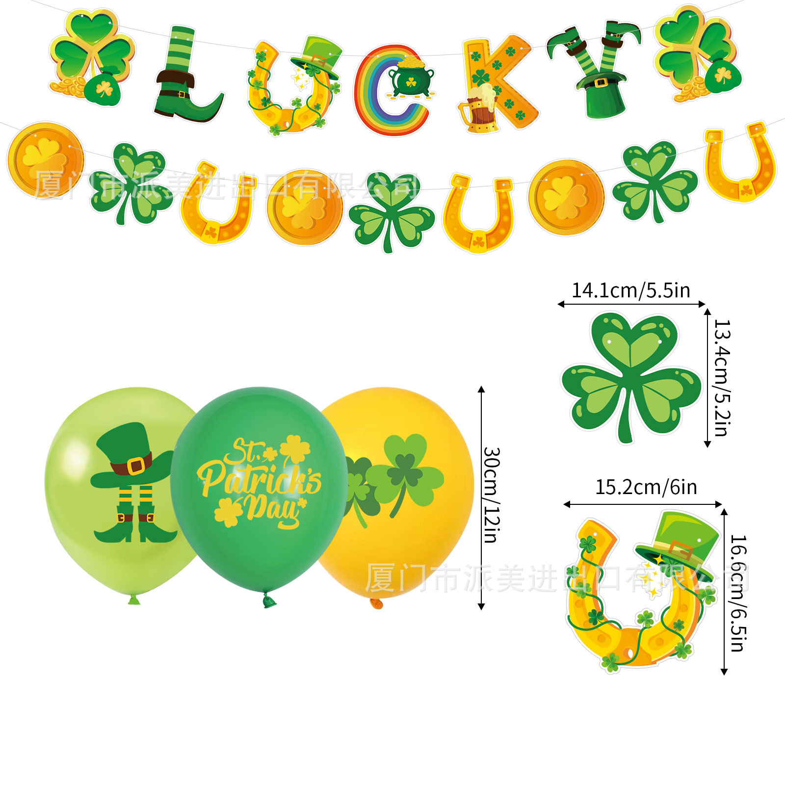 국경 성 패트릭의 날 테마 휴일 축하 파티 장식 배경 벽 레이아웃 깃발 사탕 상자 나선형