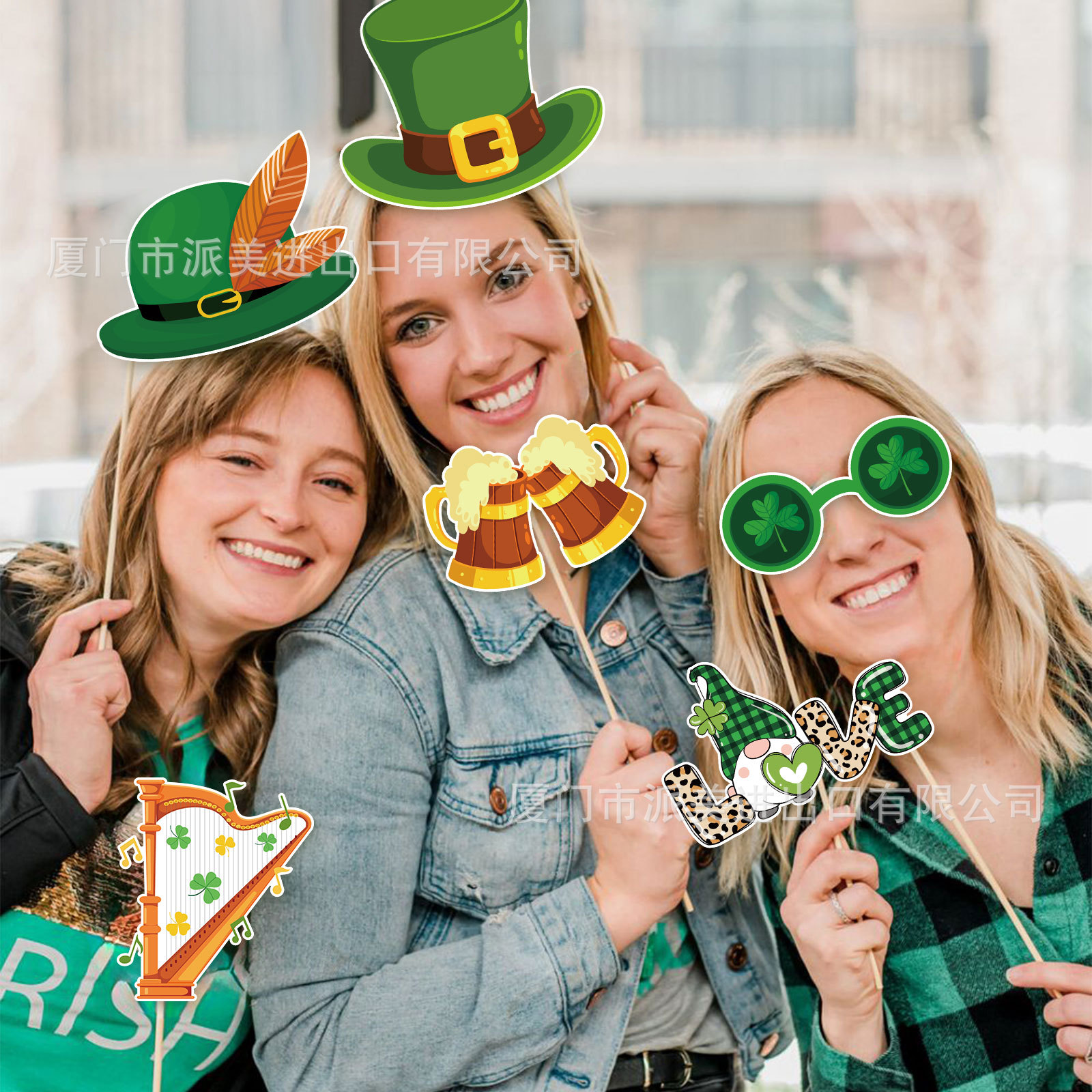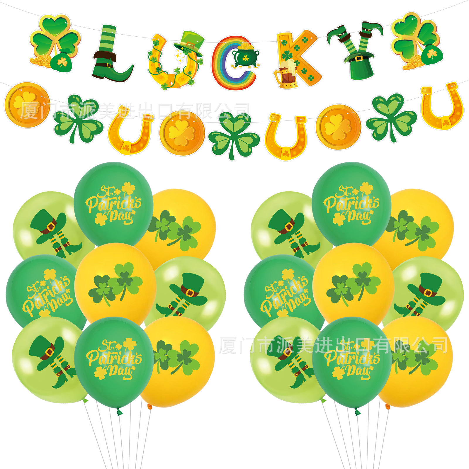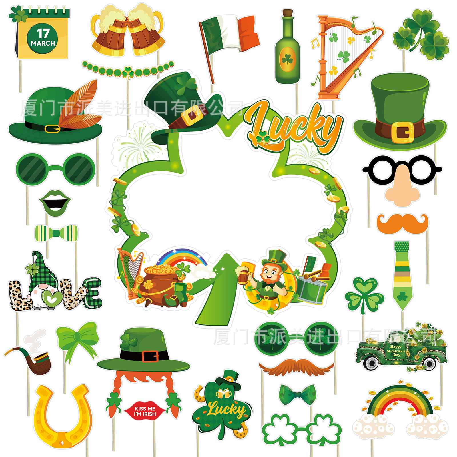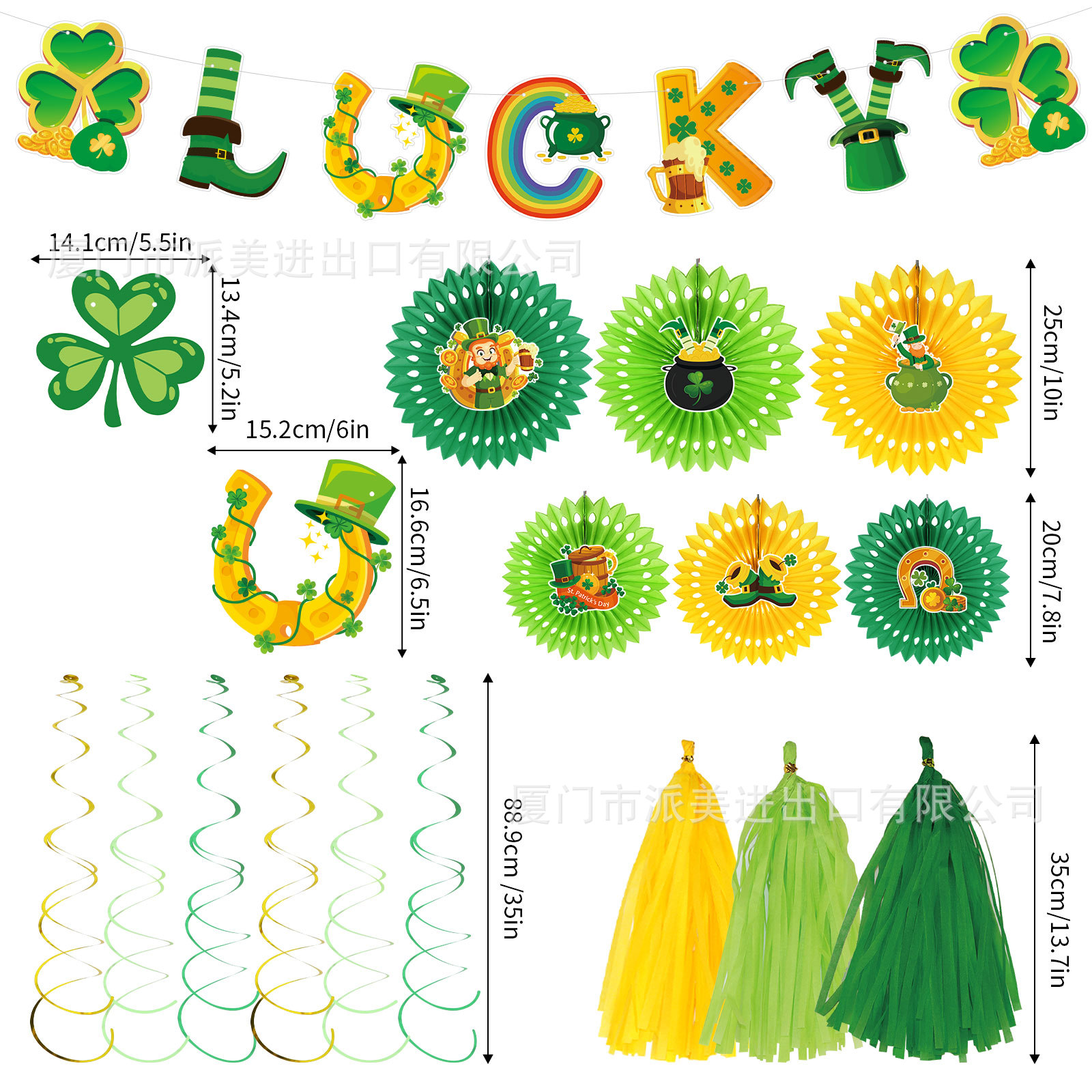 국경 성 패트릭의 날 테마 휴일 축하 파티 장식 배경 벽 레이아웃 깃발 사탕 상자 나선형