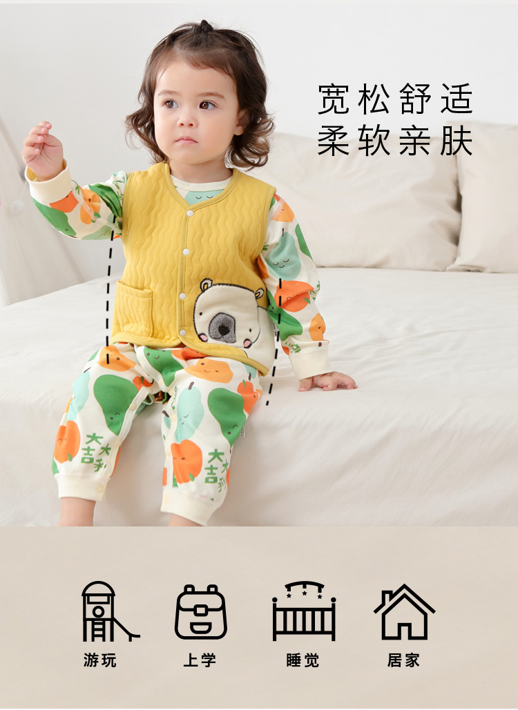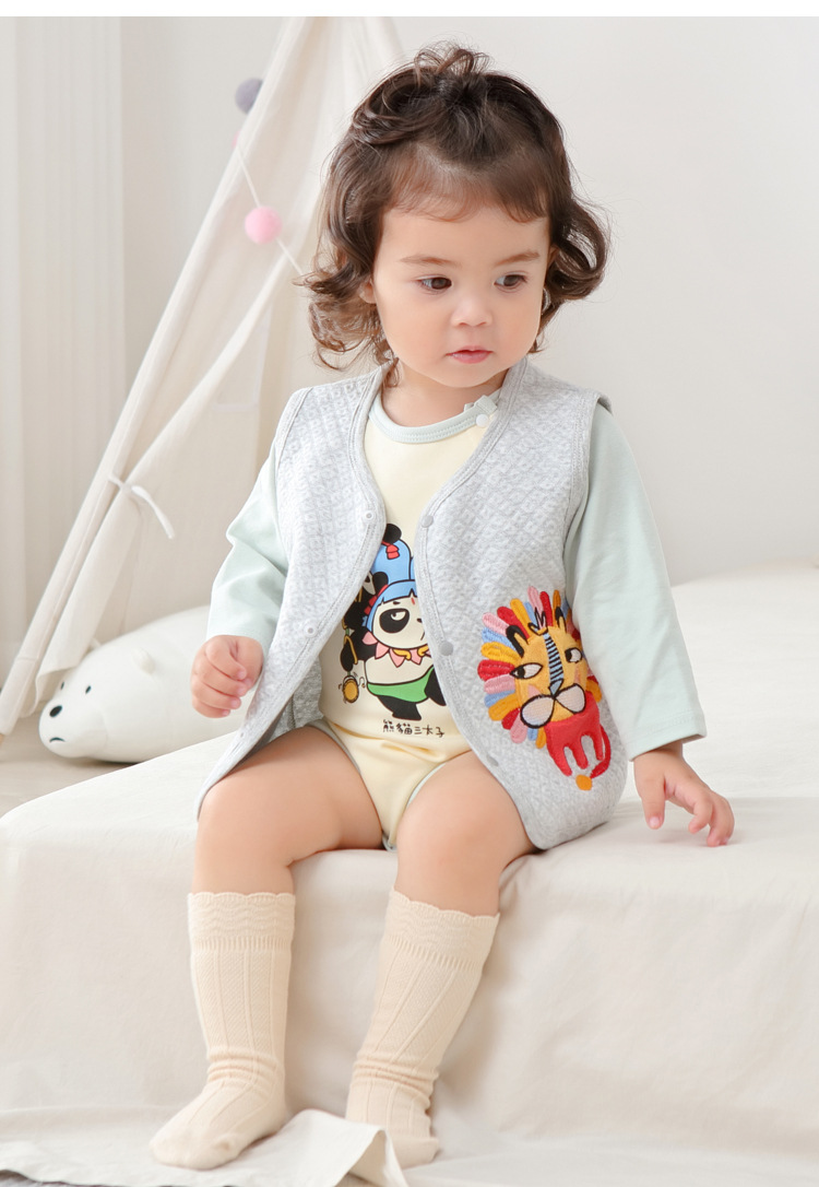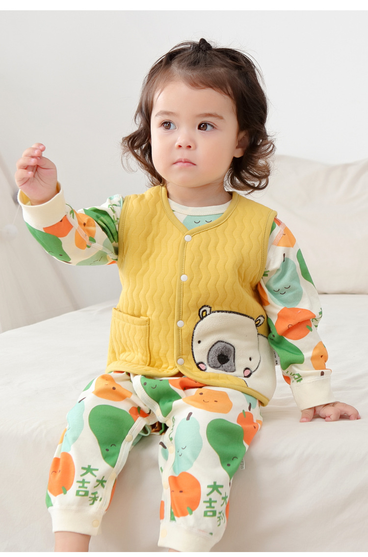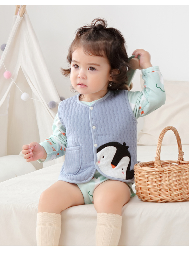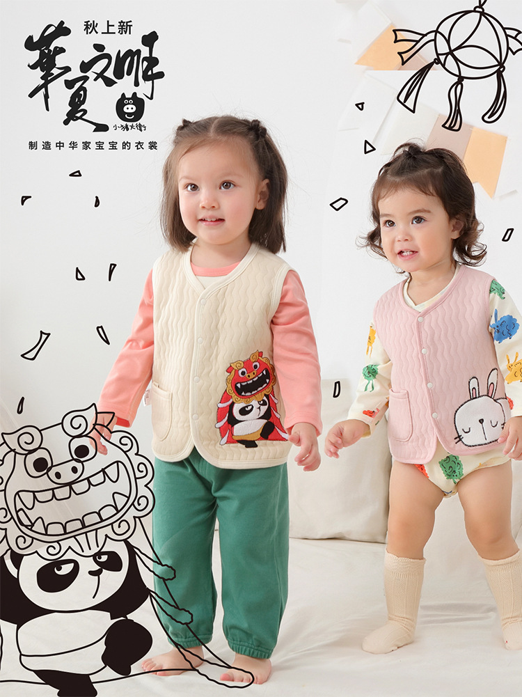 작은 돼지 데이비드 2025년 신상 가을 올 프린트 보온 외출 캐주얼 조끼 남녀 아기용 양면 조끼스토어 가기