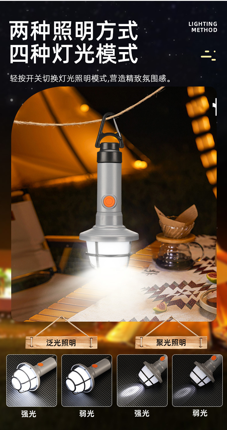 나침반 야외 캠핑 텐트 라이트와 국경 간 다기능 캠핑 라이트 TYPE-C 충전식 조명 손전등