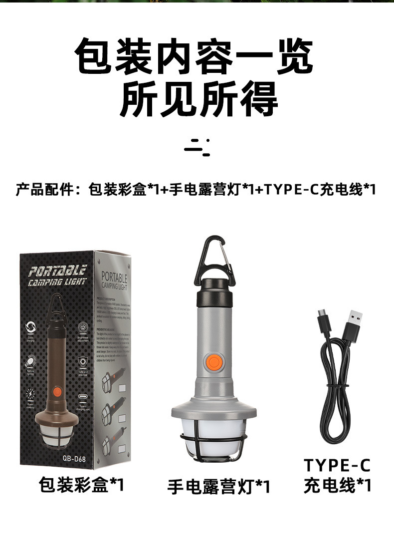 나침반 야외 캠핑 텐트 라이트와 국경 간 다기능 캠핑 라이트 TYPE-C 충전식 조명 손전등스토어 가기