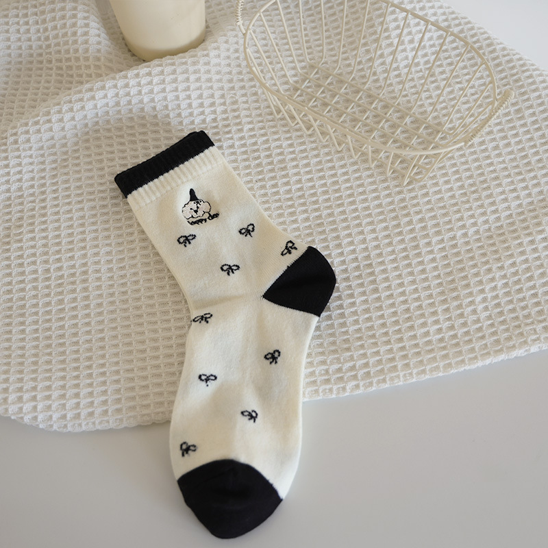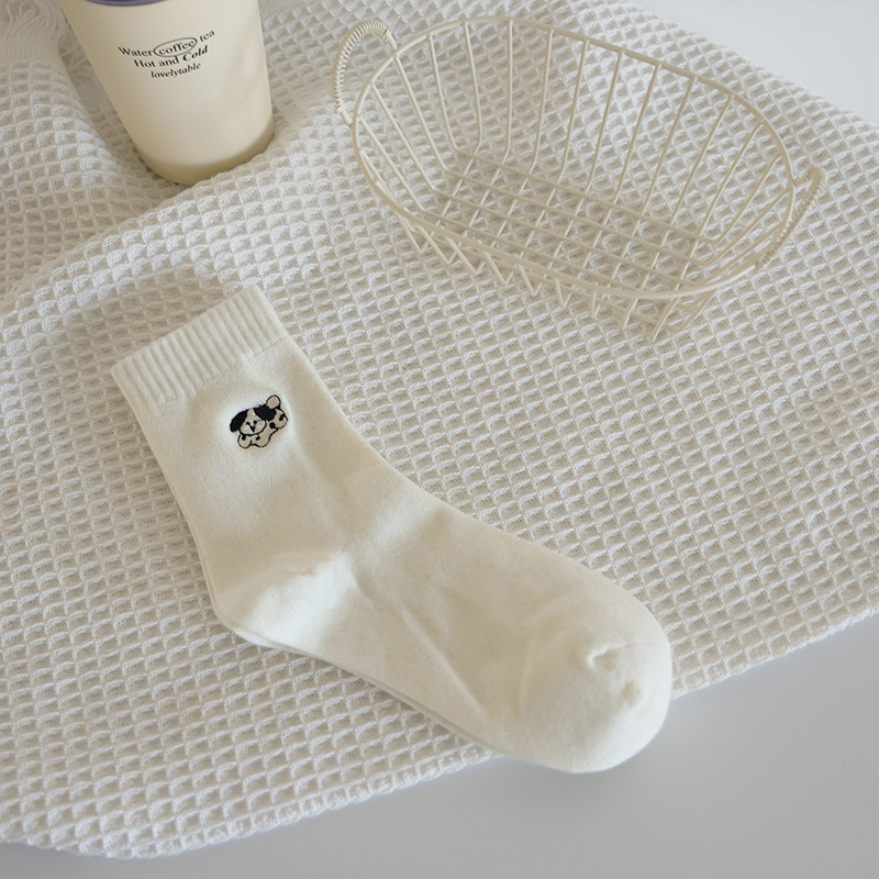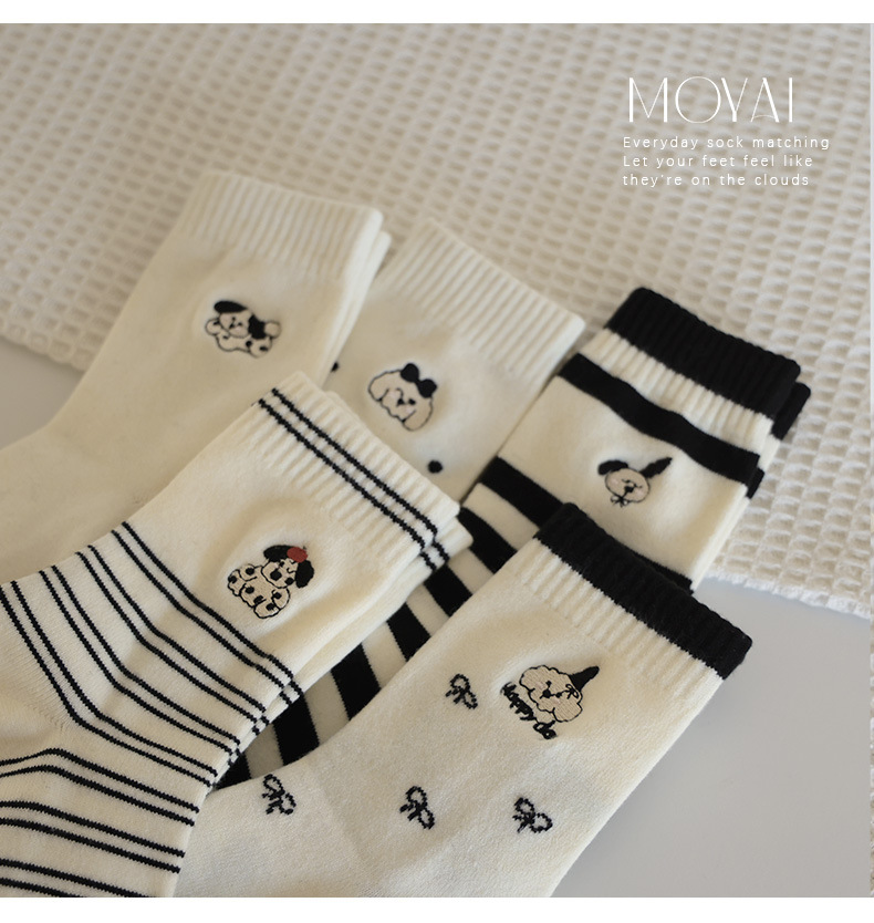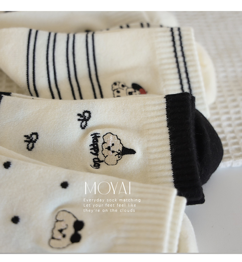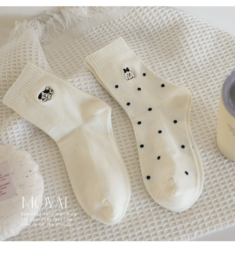 캐시미어 양말 여성용 가을과 겨울 스택 양말 두꺼운 따뜻한 일본 자수 강아지 중간 길이 양말 양모 Yuezi 스타킹스토어 가기