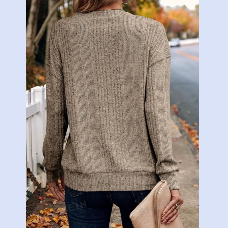 2024 가을과 겨울 새로운 아마존 유럽과 미국의 여성 니트 버튼 스웨터 캐주얼 긴 소매 느슨한 탑 여성용 티셔츠