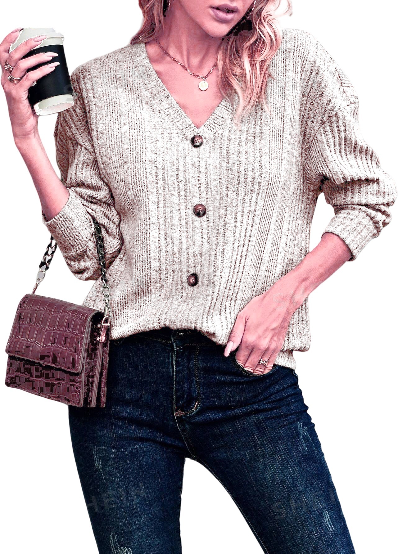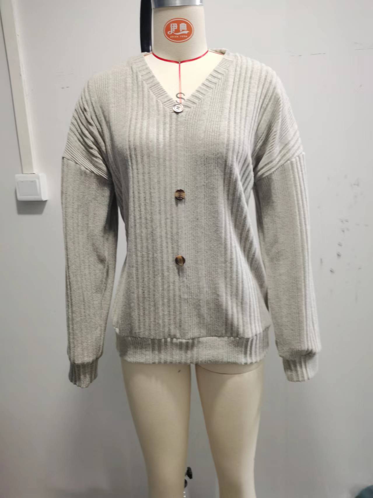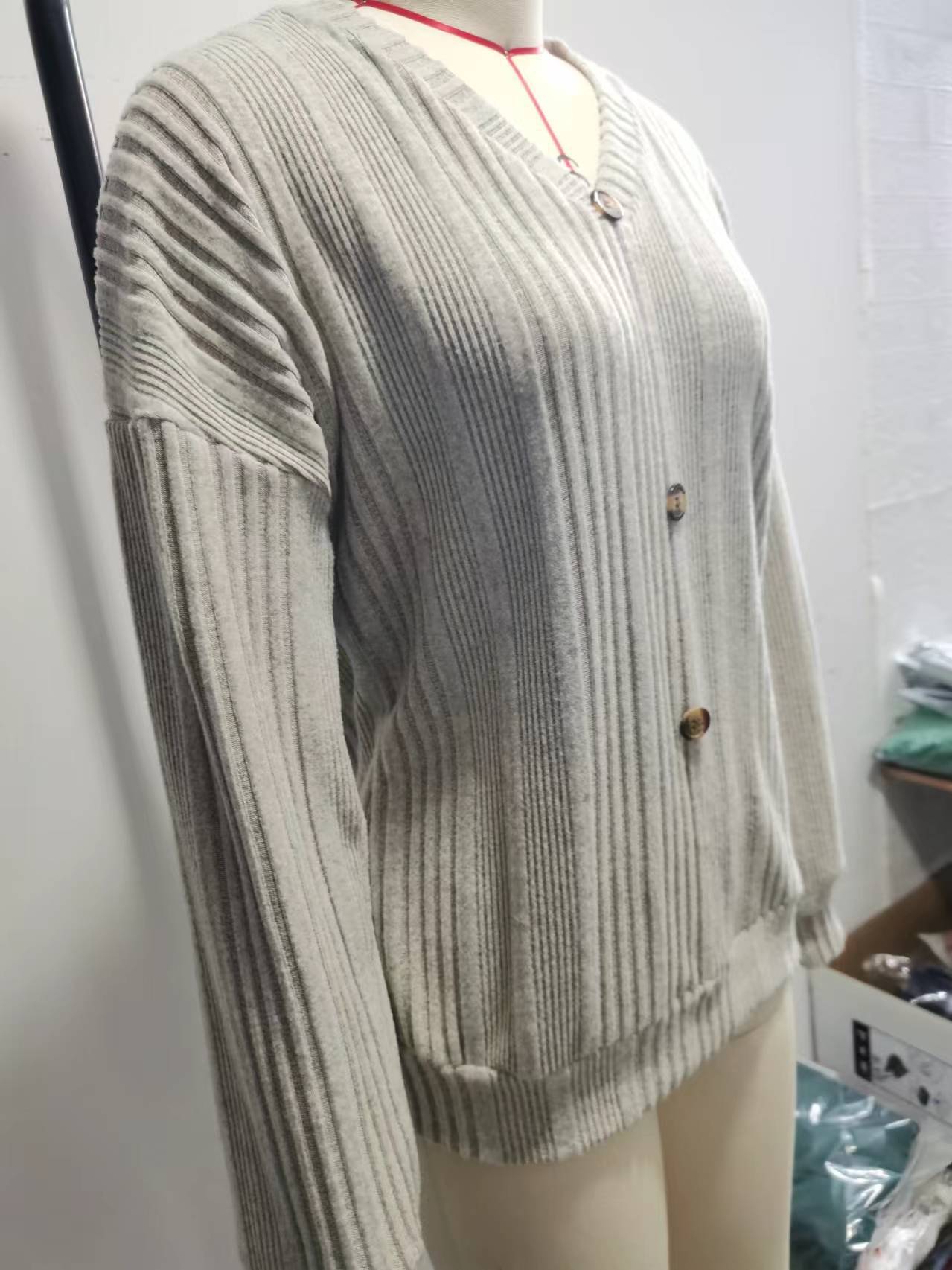 2024 가을과 겨울 새로운 아마존 유럽과 미국의 여성 니트 버튼 스웨터 캐주얼 긴 소매 느슨한 탑 여성용 티셔츠스토어 가기