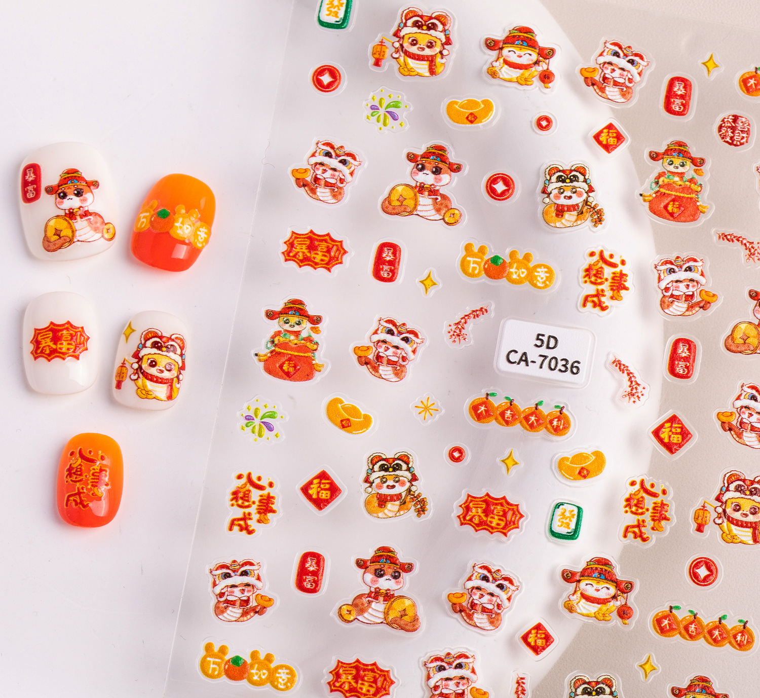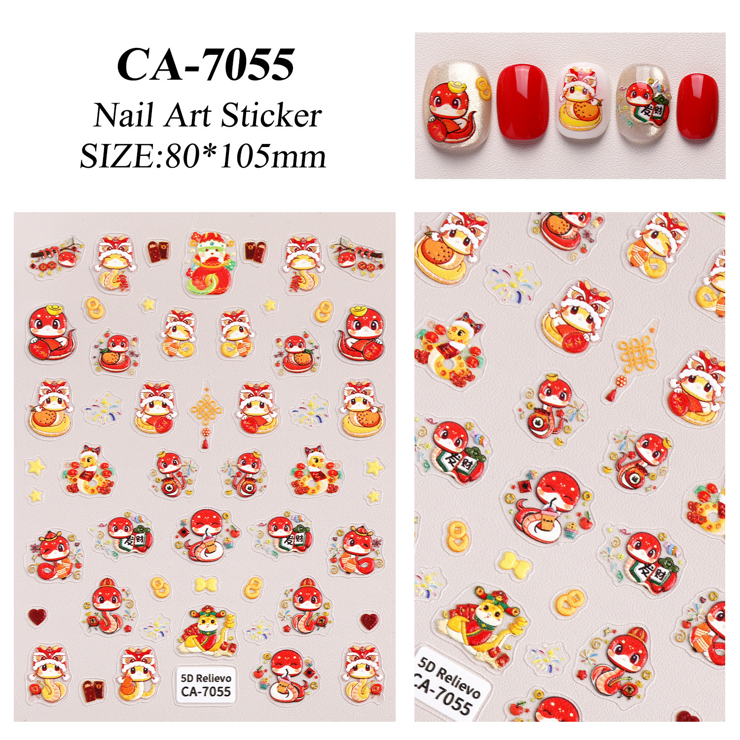 국경 간 새해 뱀 스티커 축복 새해 축제 5D 구호 포춘 작은 뱀 손톱 스티커 CA스토어 가기