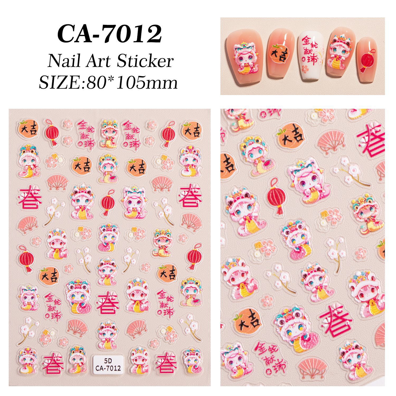 국경 간 새해 뱀 스티커 축복 새해 축제 5D 구호 포춘 작은 뱀 손톱 스티커 CA