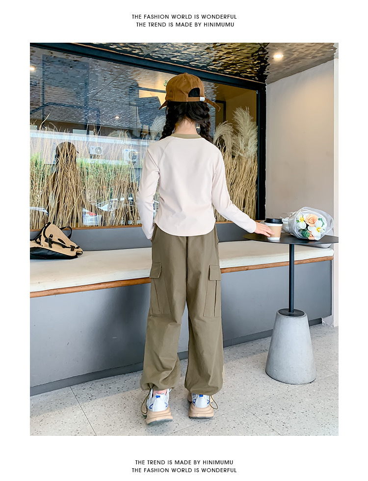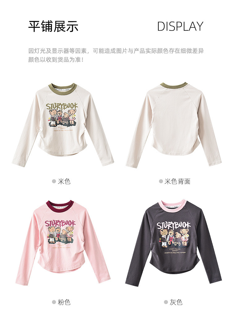 2024 년 뉴 리틀 베어 티셔츠 남학생 서양식 불규칙한 긴 소매 티셔츠 걸스 탑 안락한베이스 아우터웨어 봄과 가을스토어 가기