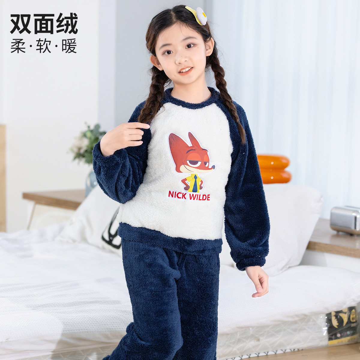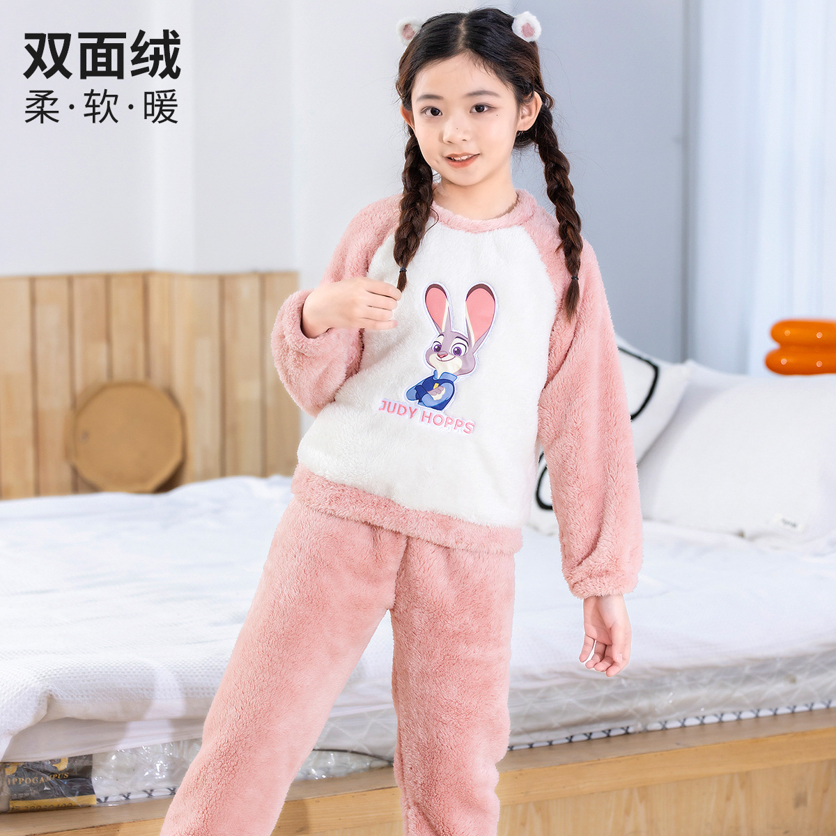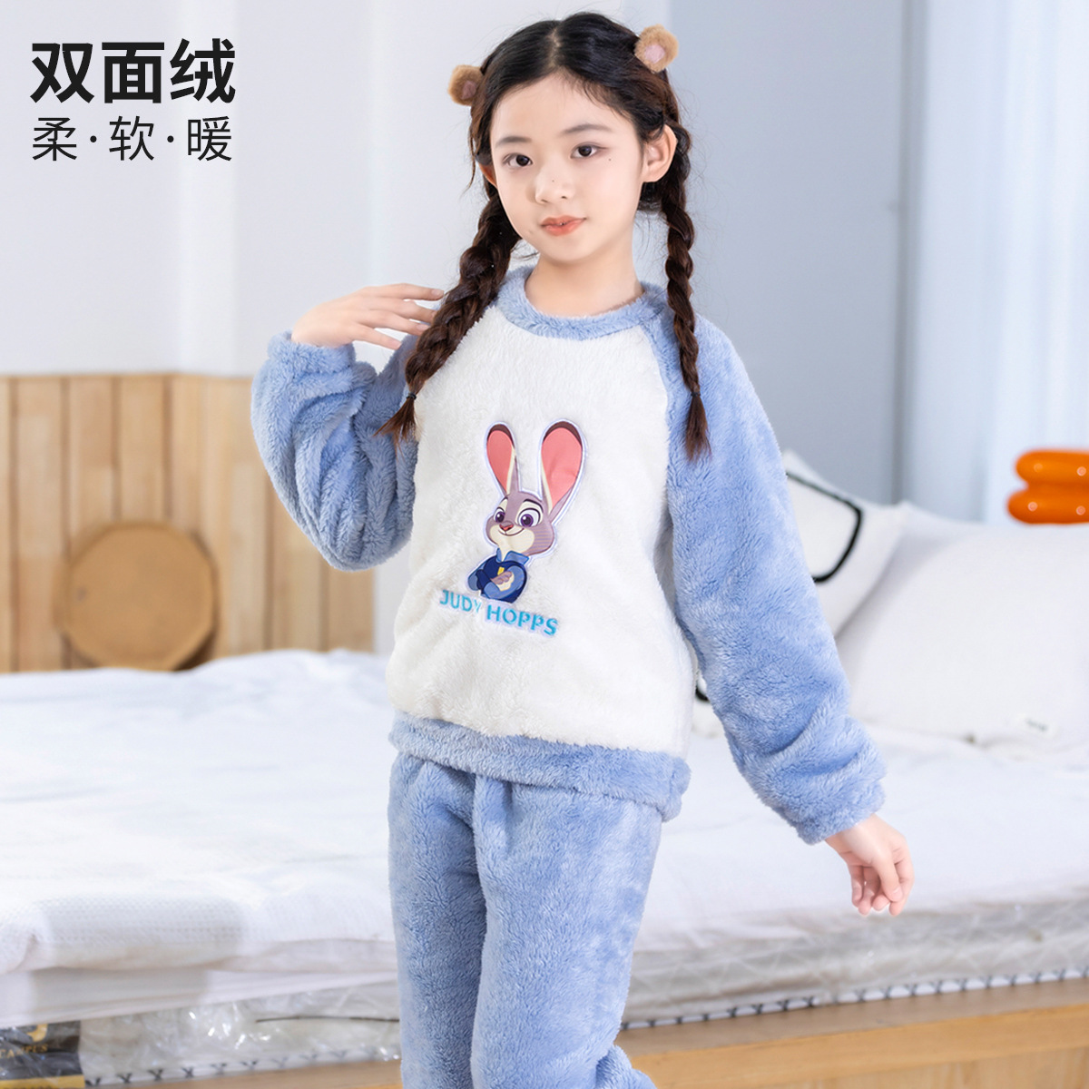 주디 경찰관 소녀 잠옷 세트 어린이 아기 가을 겨울 코튼 벨벳 겨울 기모 두꺼운 집 옷 토끼