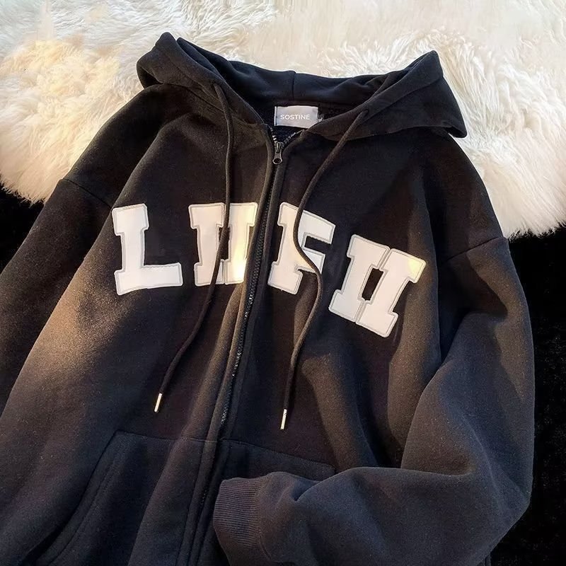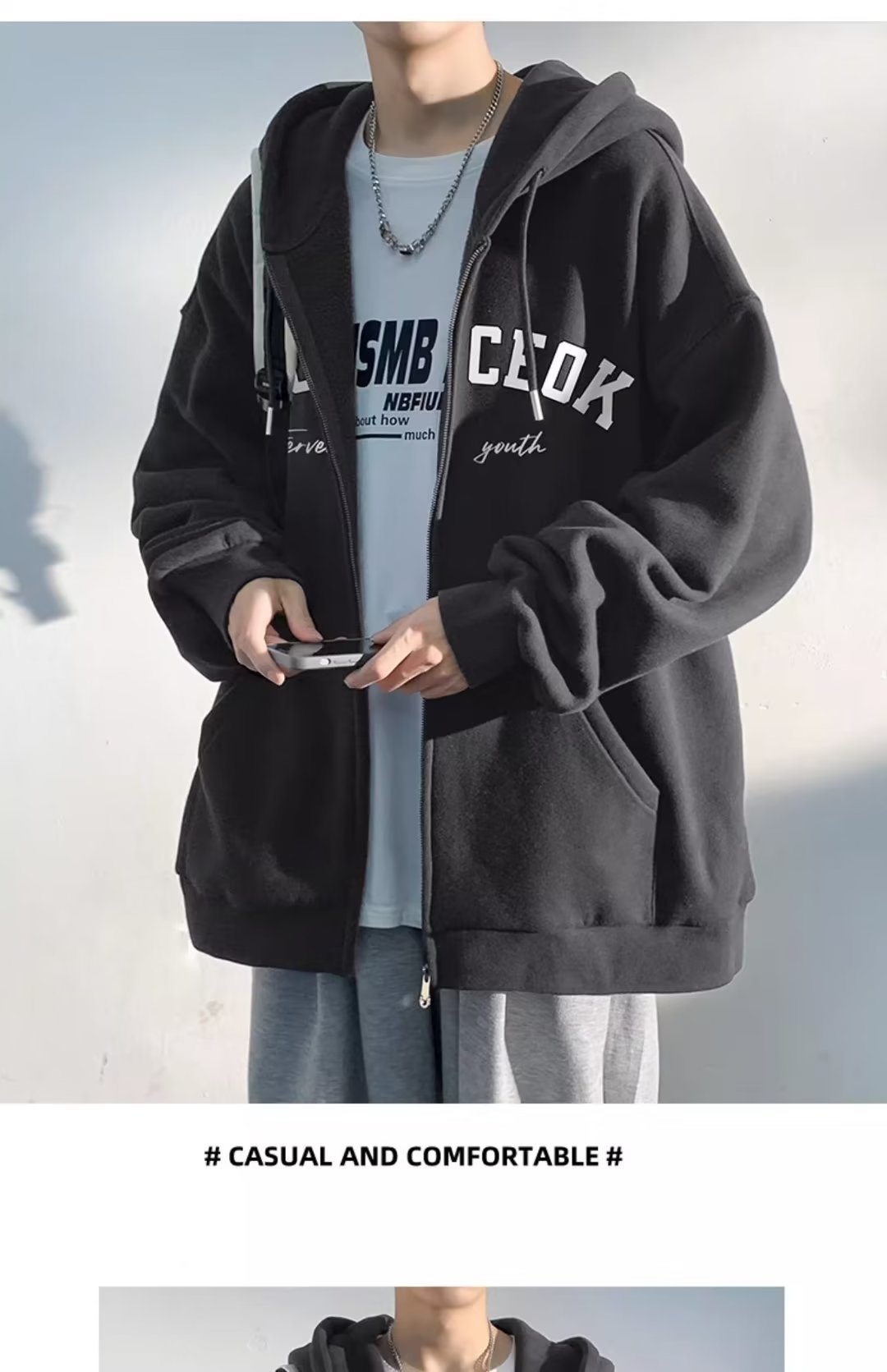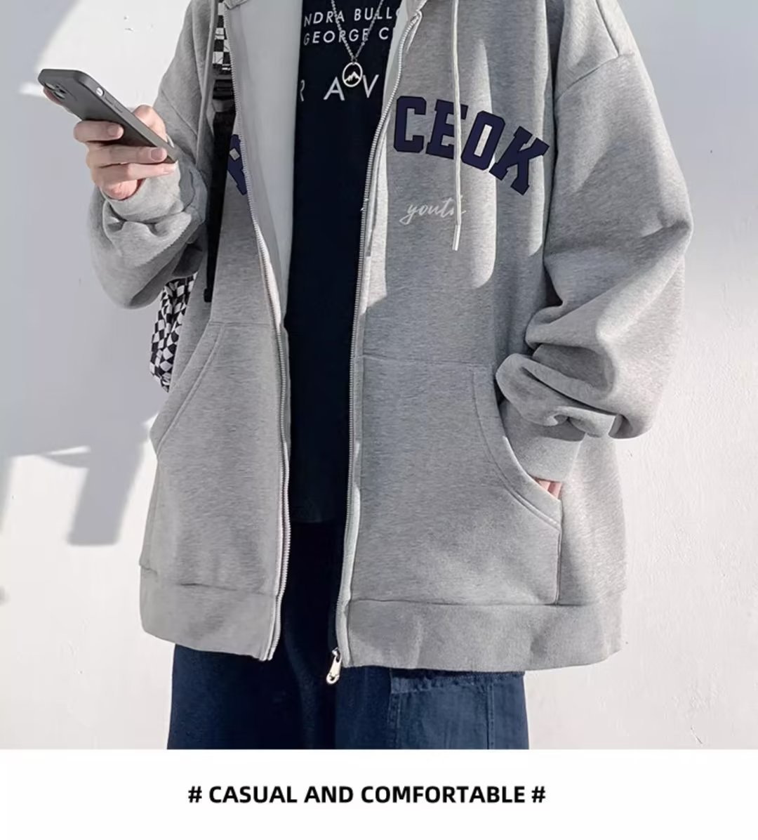 스웨터 재킷 소년 봄과 가을 패션 브랜드 느슨한 캐주얼 후드 솔리드 컬러 유행 커플 올 매치 플러스 사이즈 카디건스토어 가기