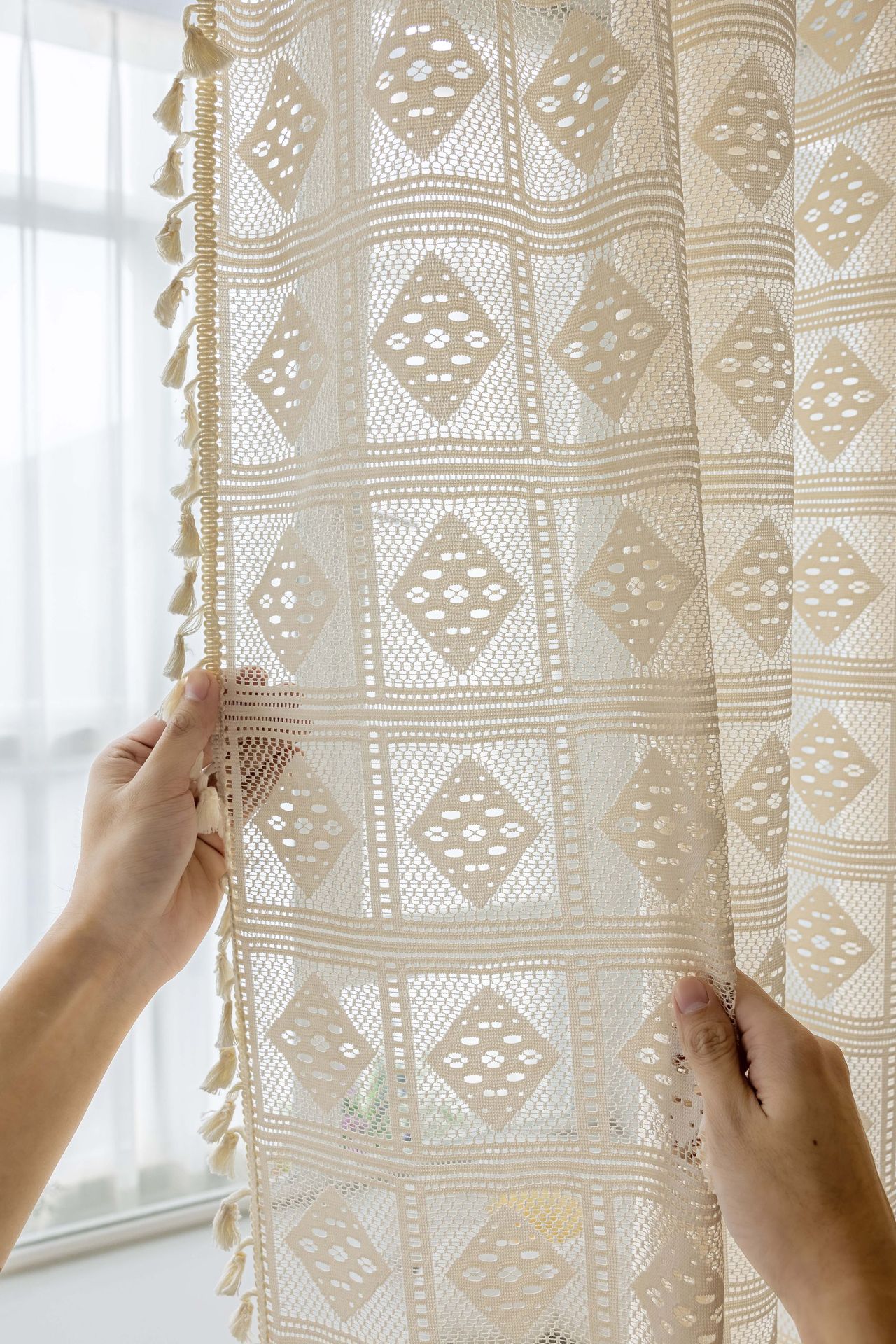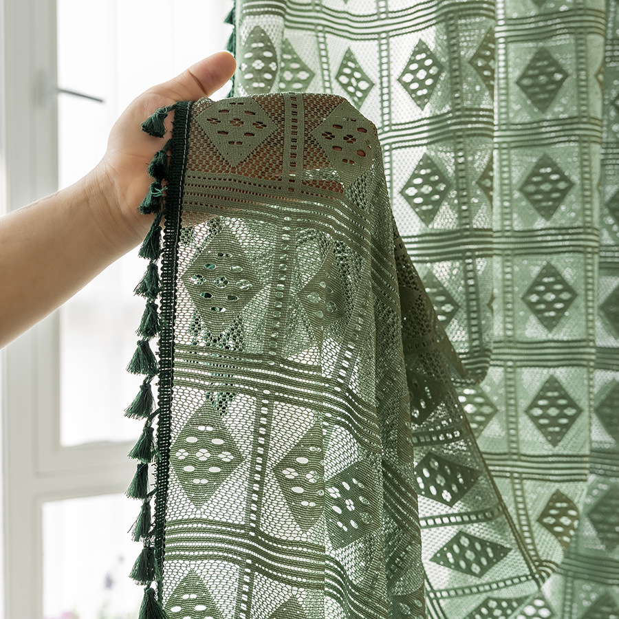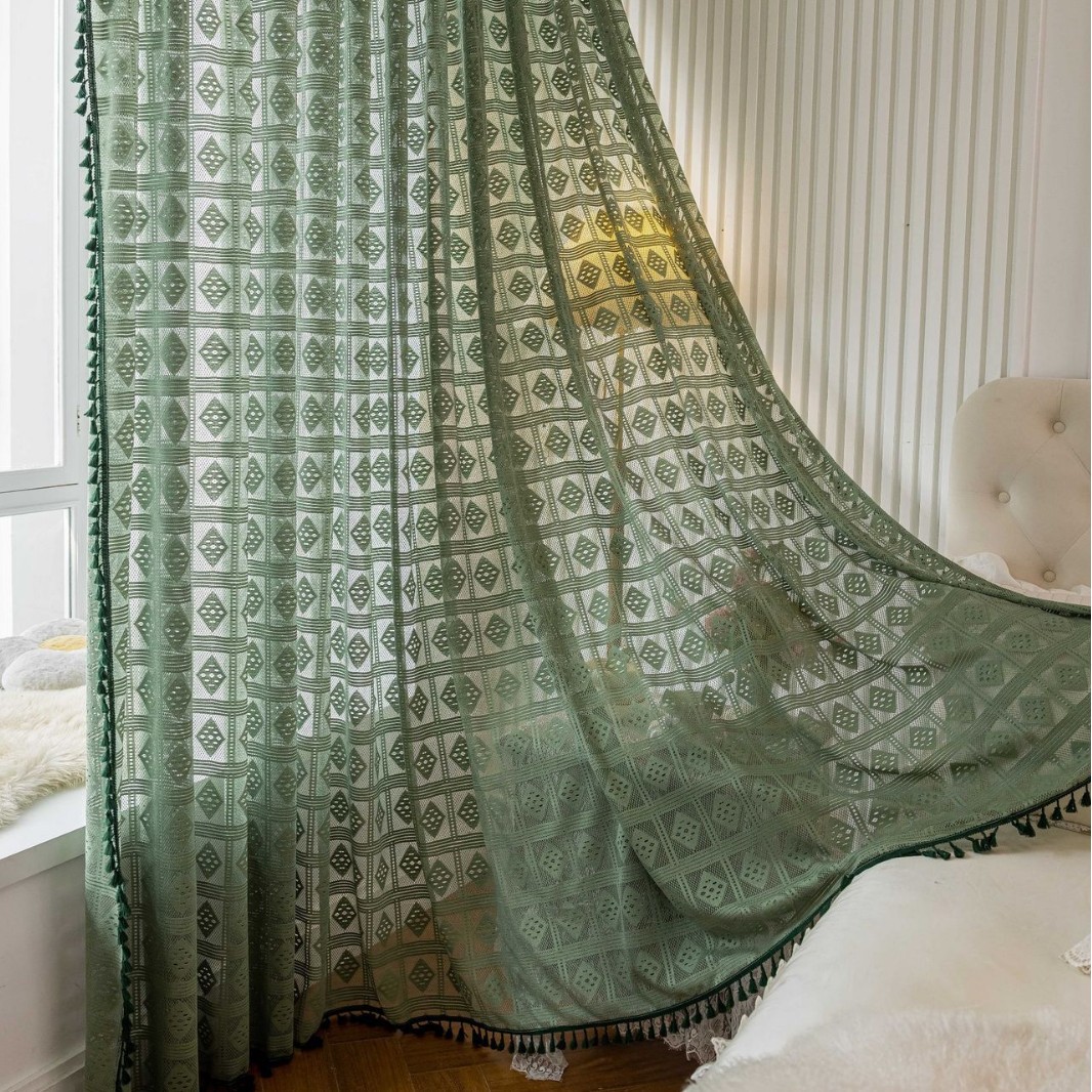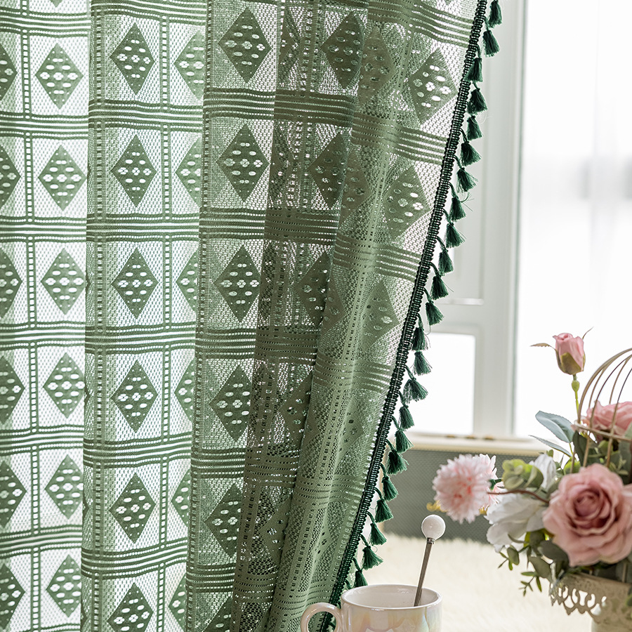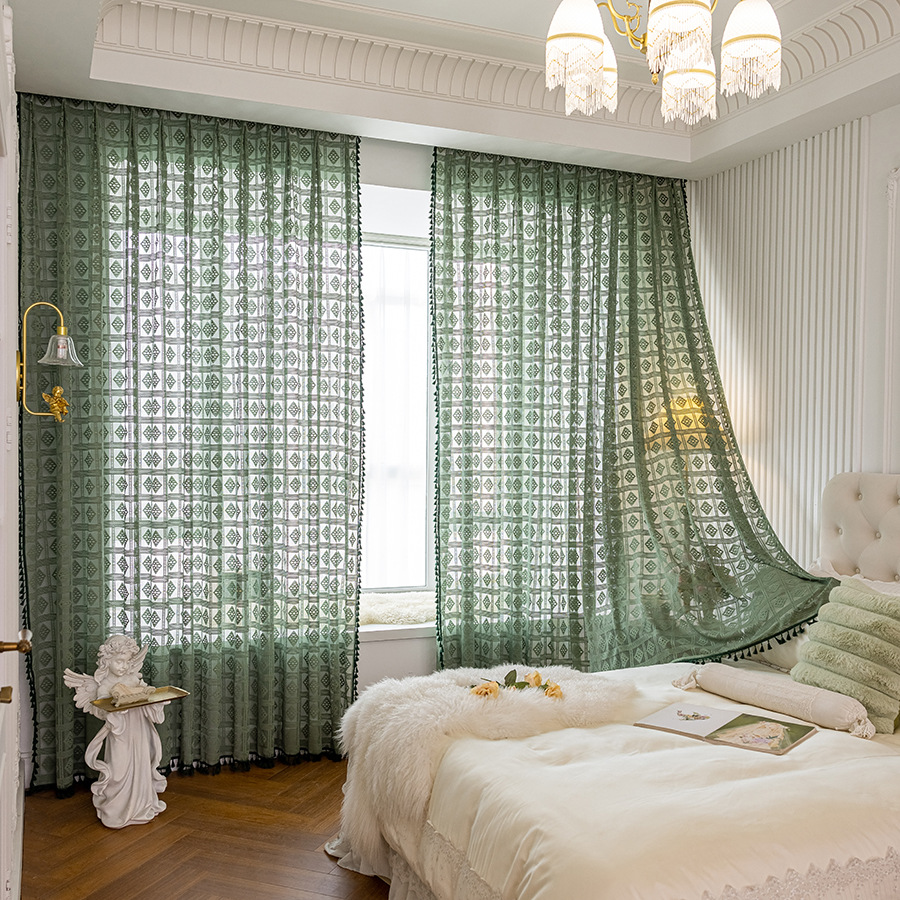 Tangmei 대외 무역 투명한 커튼 창 화면 도매 북유럽 인 베이지 빈 다이아몬드 격자 거실 침실 커튼
