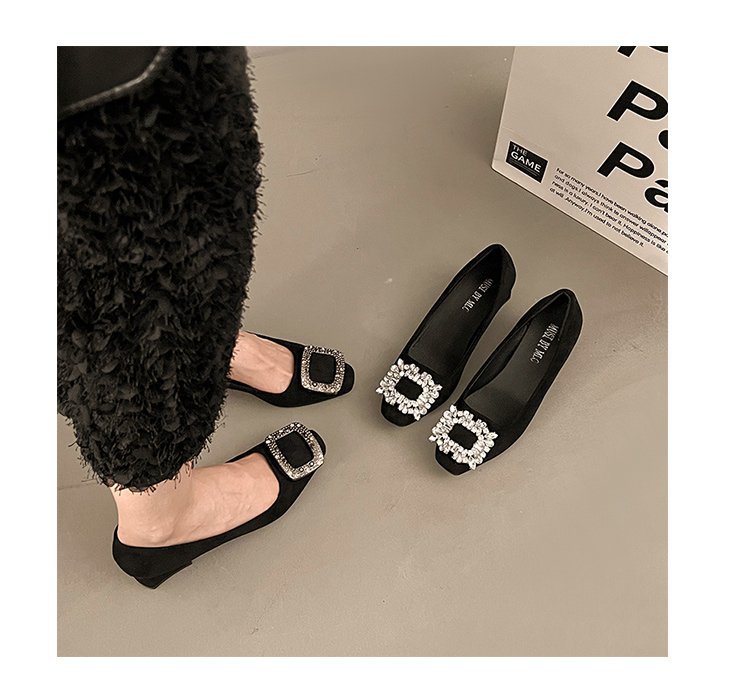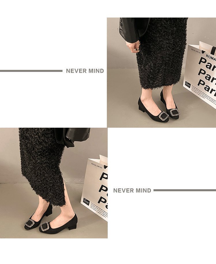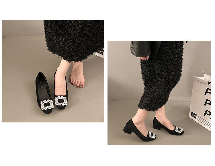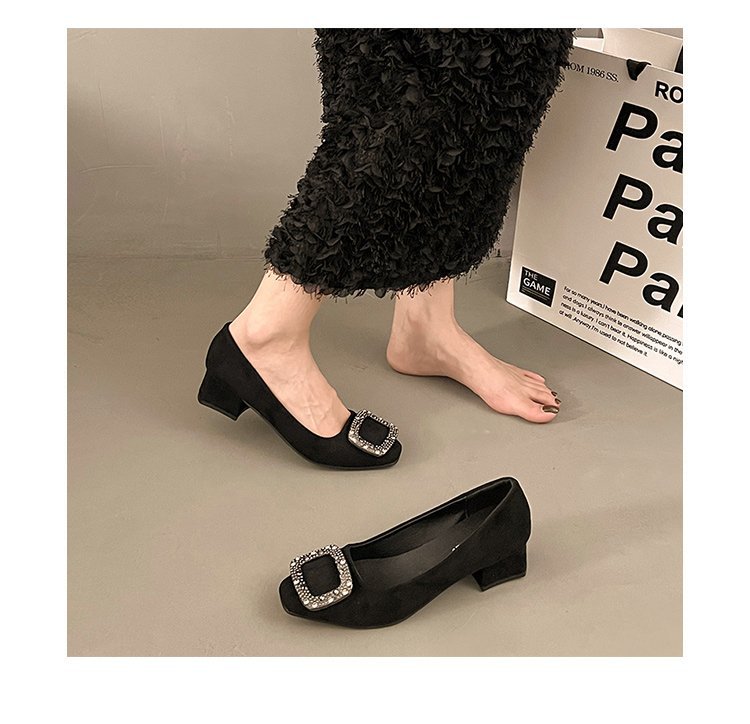 하이힐 스퀘어 헤드 라인 스톤 하이 레벨 신발 여성 신발 2024 새로운 가을과 겨울 검은 기질 두꺼운 굽 통근 신발스토어 가기