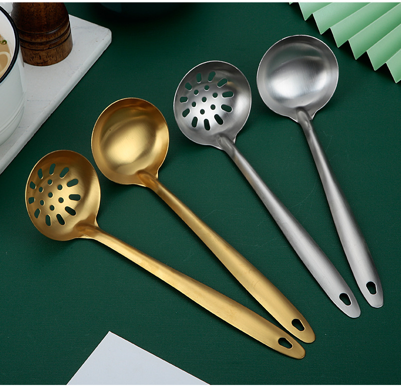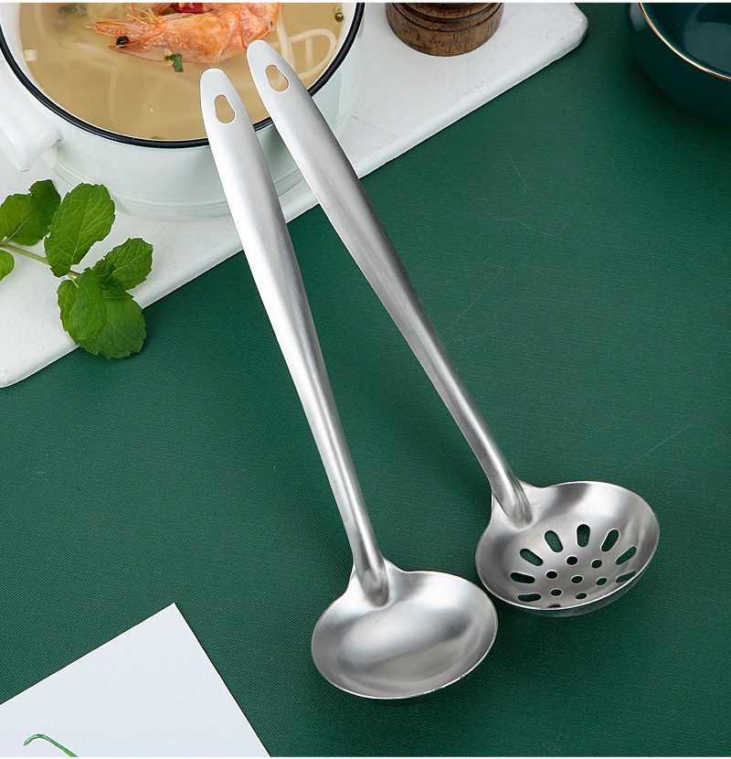 304 스테인레스 스틸 수프 쉘 콜더 긴 손잡이 핫 팟 스푼 가정용 주방 대형 수프 스푼 스프 스푼 2 피스 요리 도구