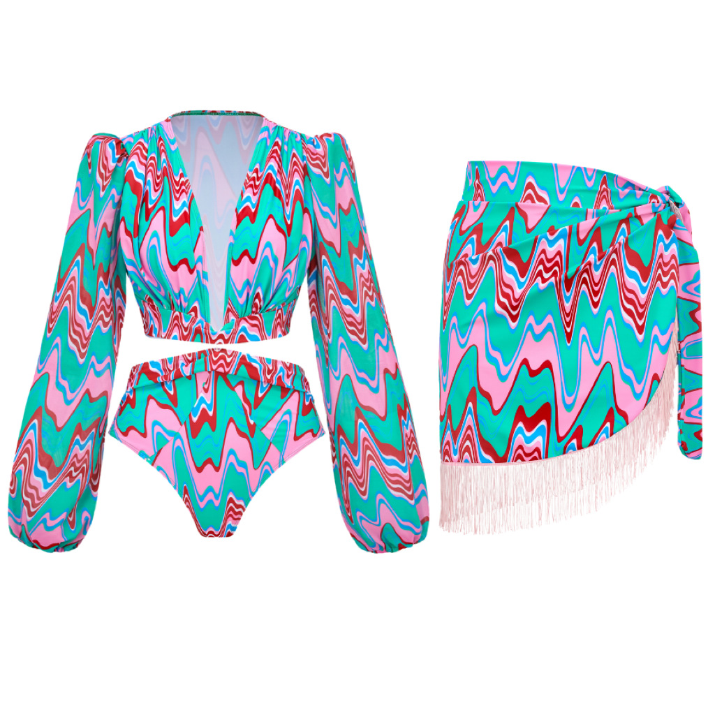 跨境2023新款外贸三件套比基尼泳衣欧美性感亚马逊泳装性感bikini