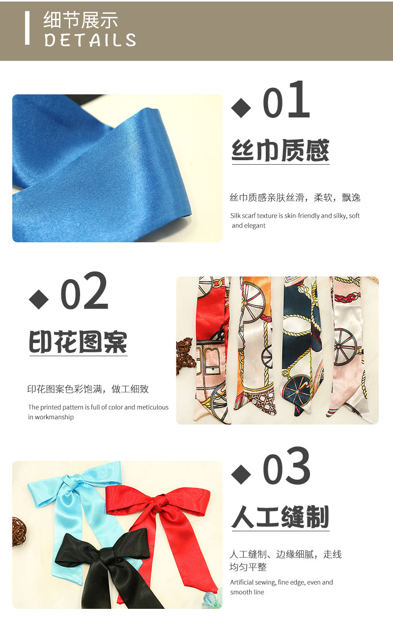 도파민 긴 단색 실크 스카프 모방 실크 넥타이 헤어 밴드 세딘 체인 조항 목도리 스카프 국경 도매스토어 가기