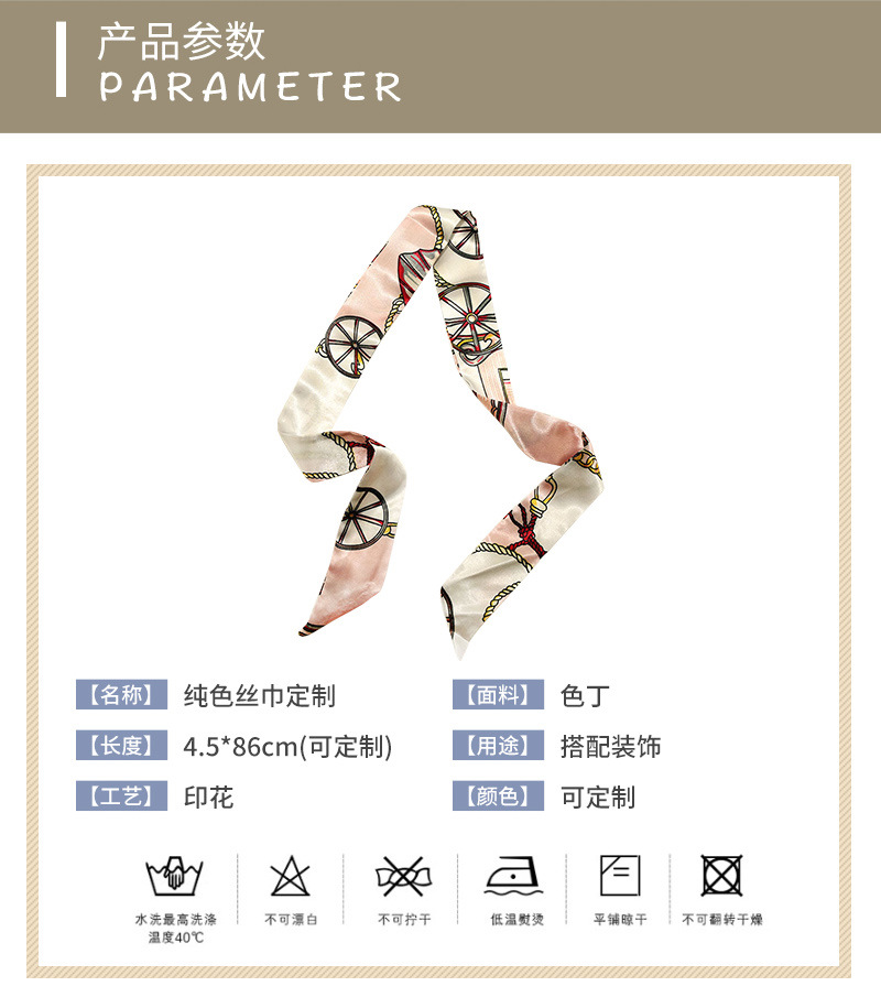 도파민 긴 단색 실크 스카프 모방 실크 넥타이 헤어 밴드 세딘 체인 조항 목도리 스카프 국경 도매