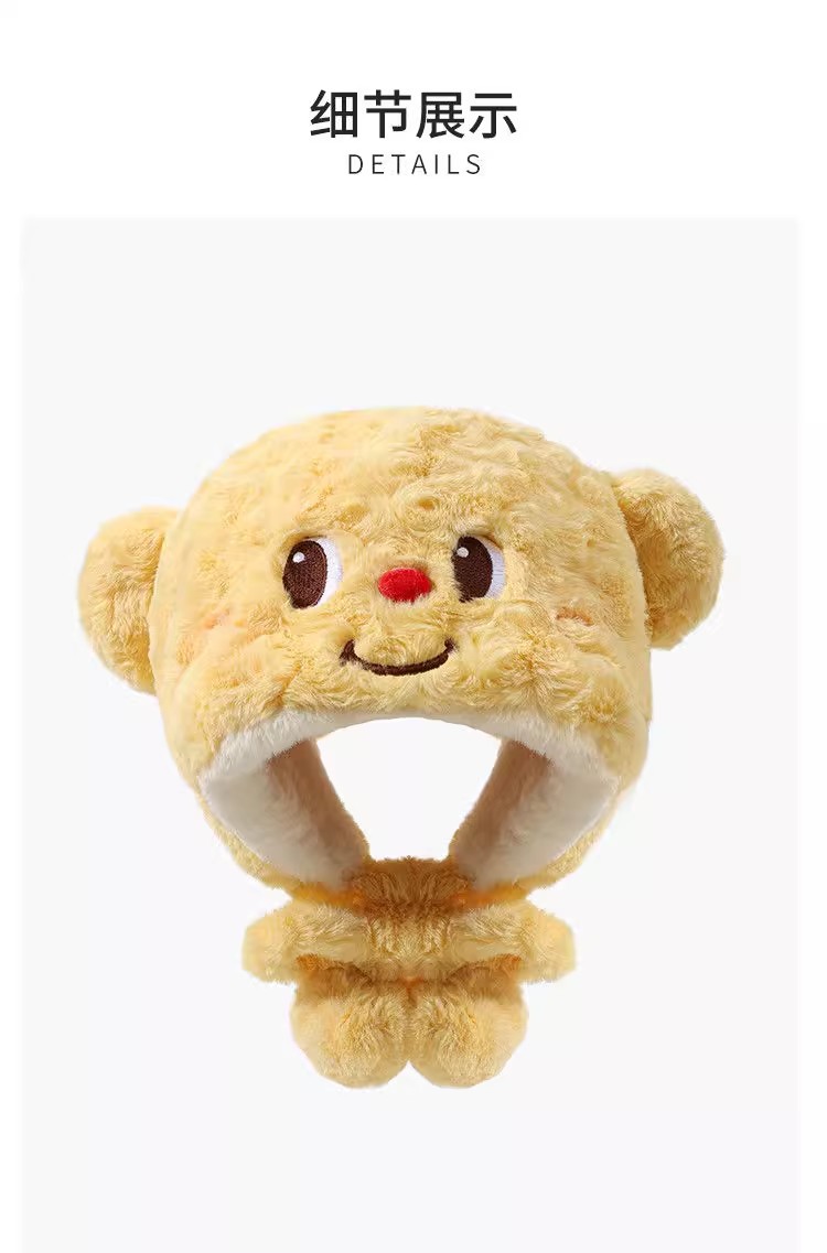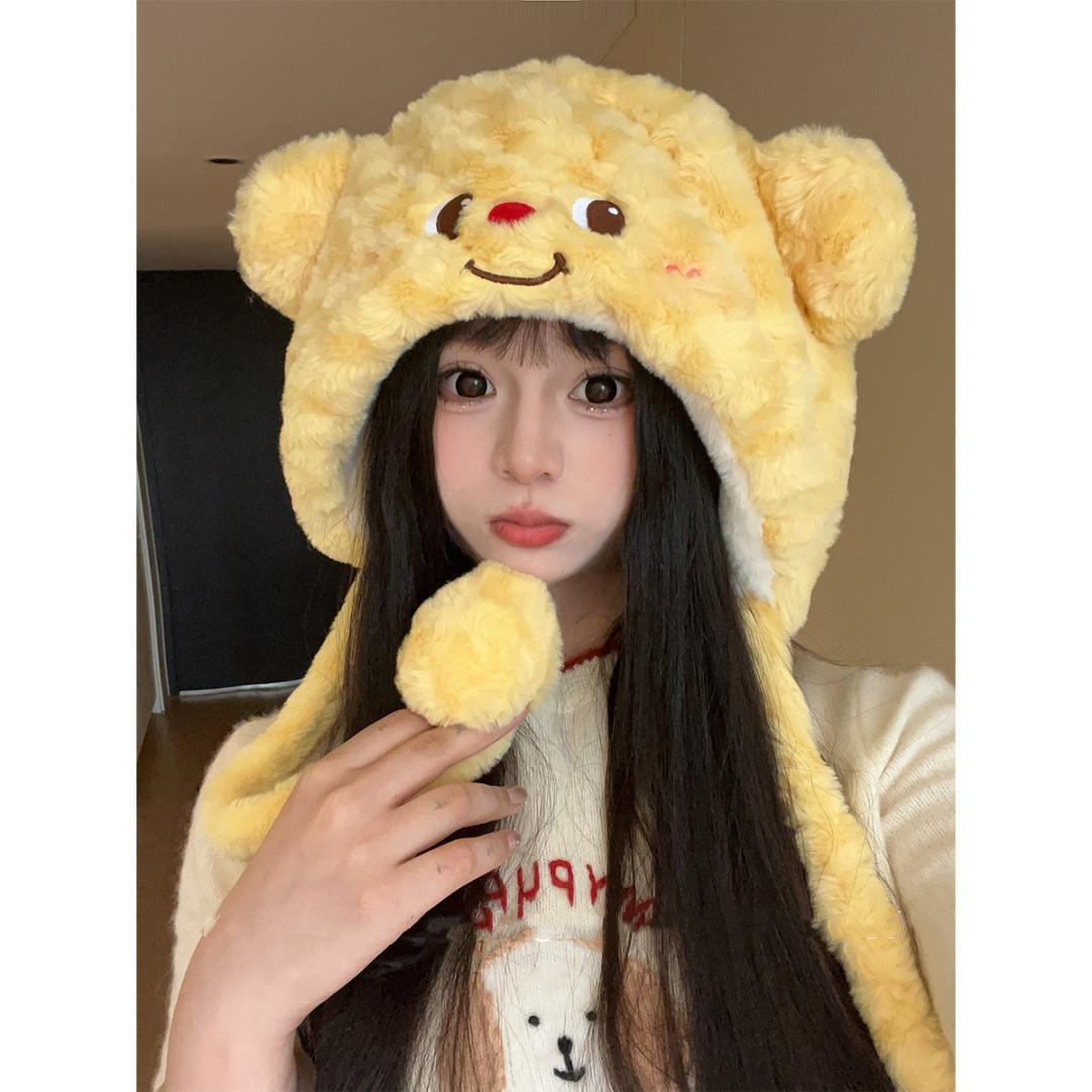 만화 귀여운 버터 곰 봉제 양모 모자 풀오버 니트 모자 원피스 따뜻한 냉간 두꺼운 가을과 겨울 레이 펑 모자