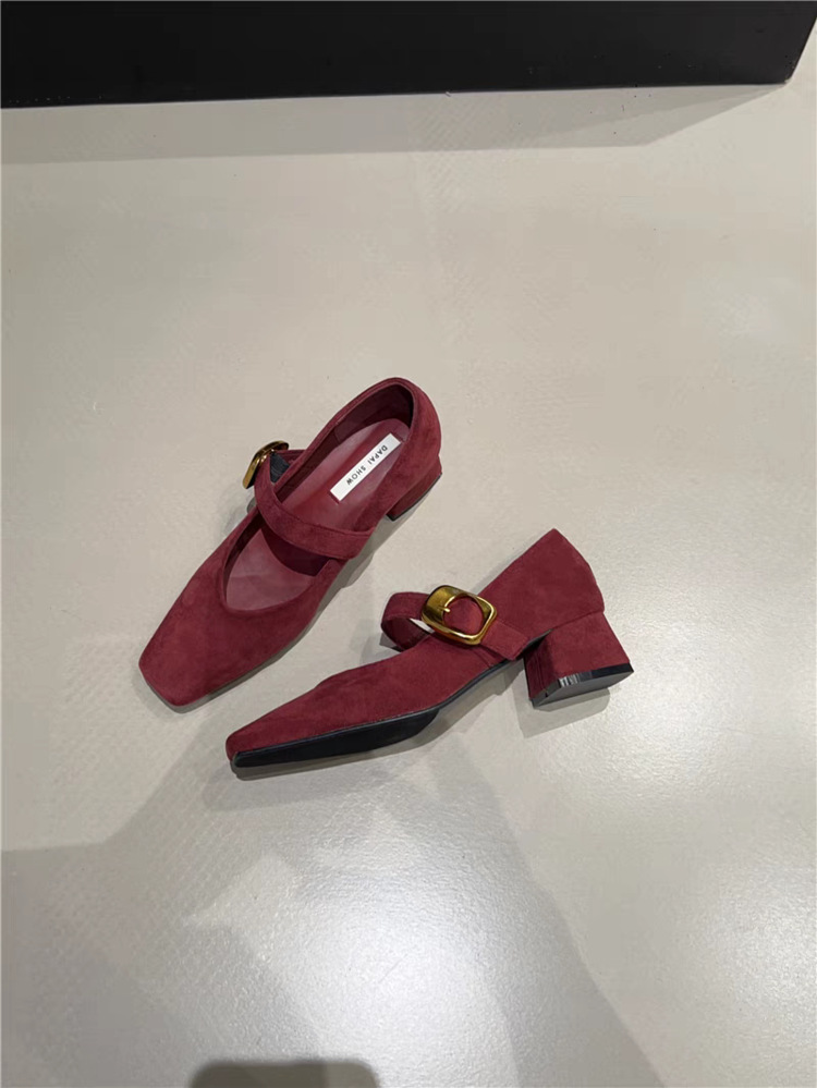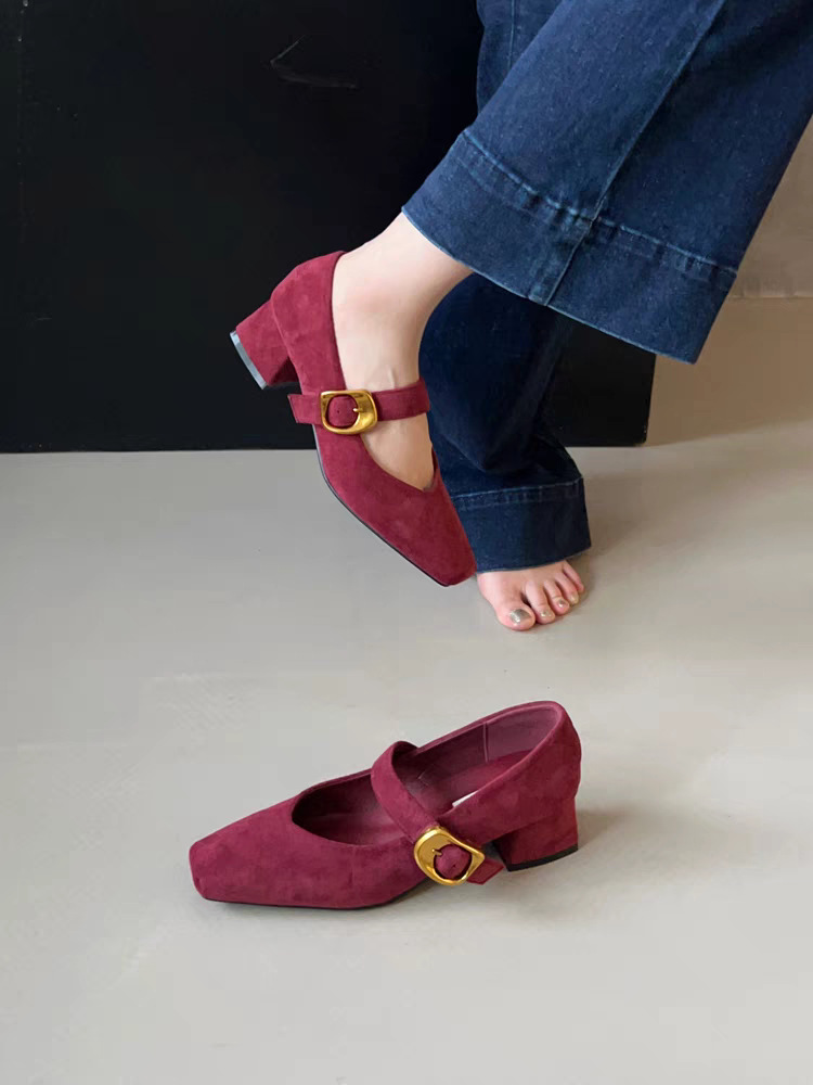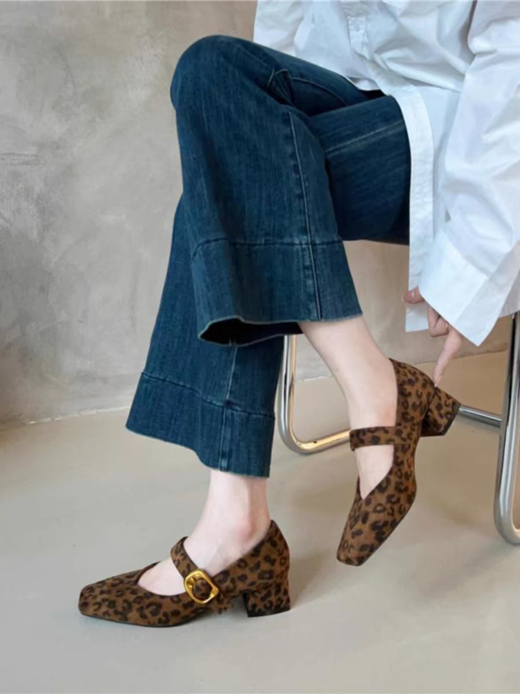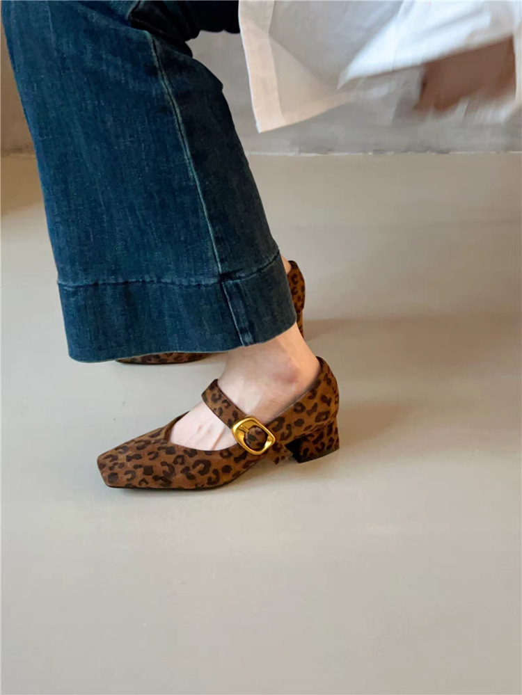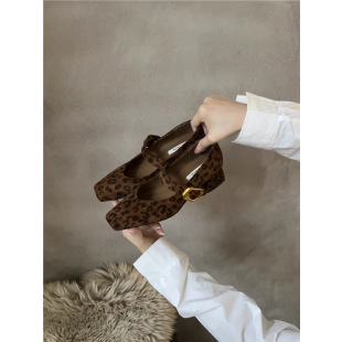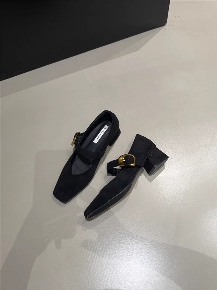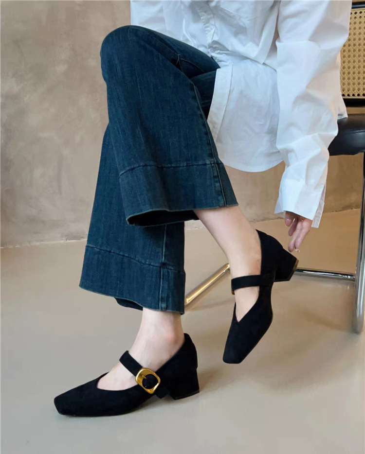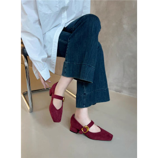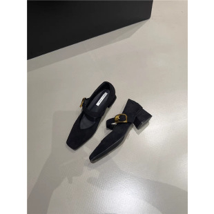 프랑스 레트로 원피스 스퀘어 헤드 메리 제인 여성 신발 2024 봄과 가을 새로운 늦은 저녁 스타일 부드러운 청키 힐 싱글 레이어 신발스토어 가기