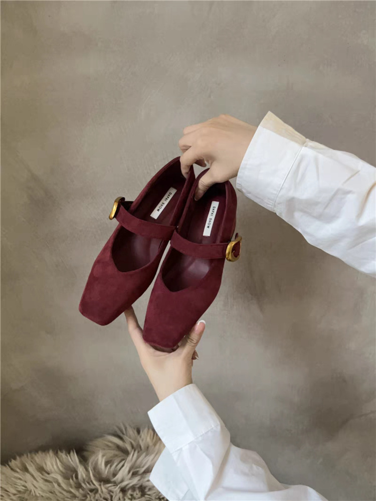 프랑스 레트로 원피스 스퀘어 헤드 메리 제인 여성 신발 2024 봄과 가을 새로운 늦은 저녁 스타일 부드러운 청키 힐 싱글 레이어 신발