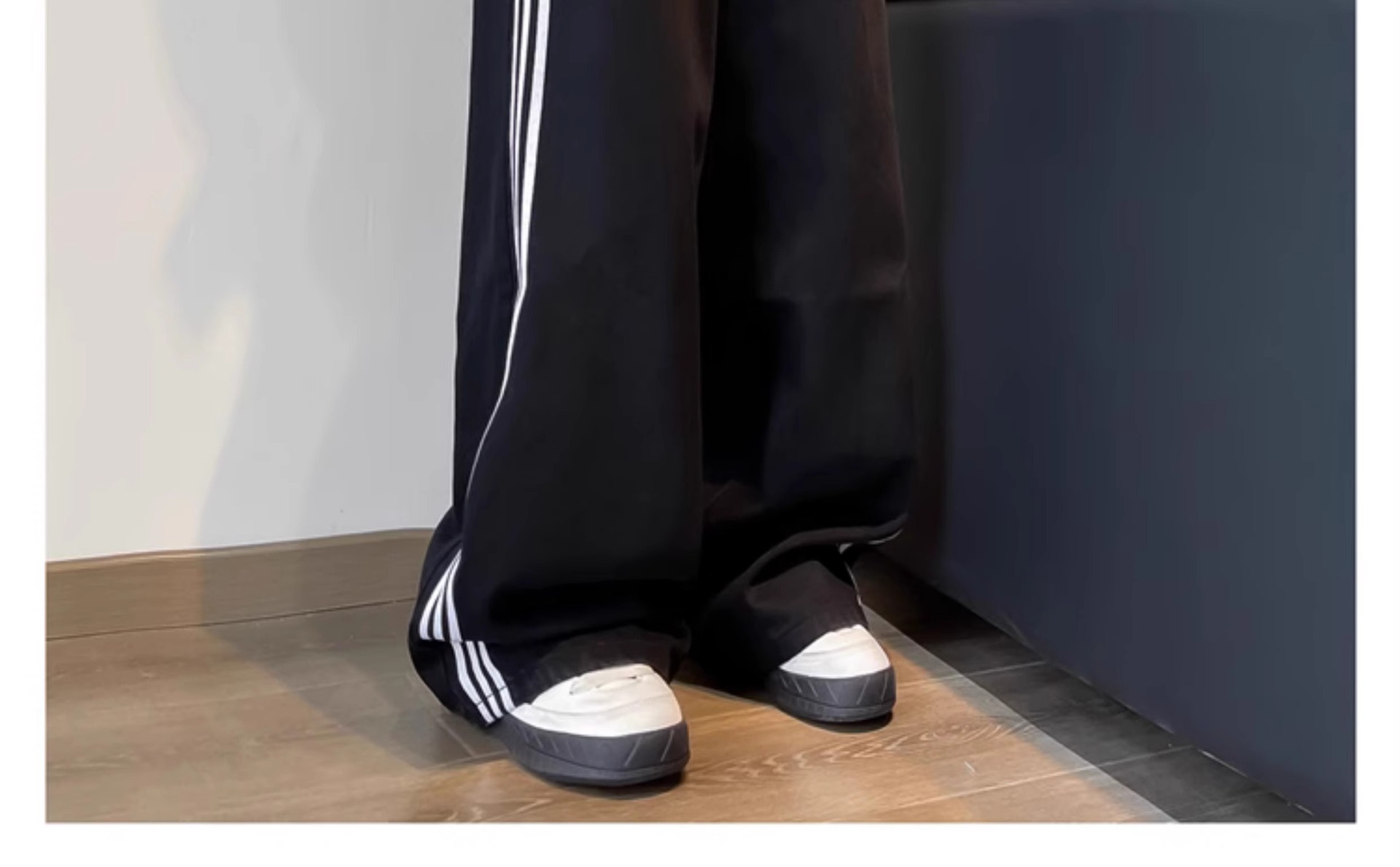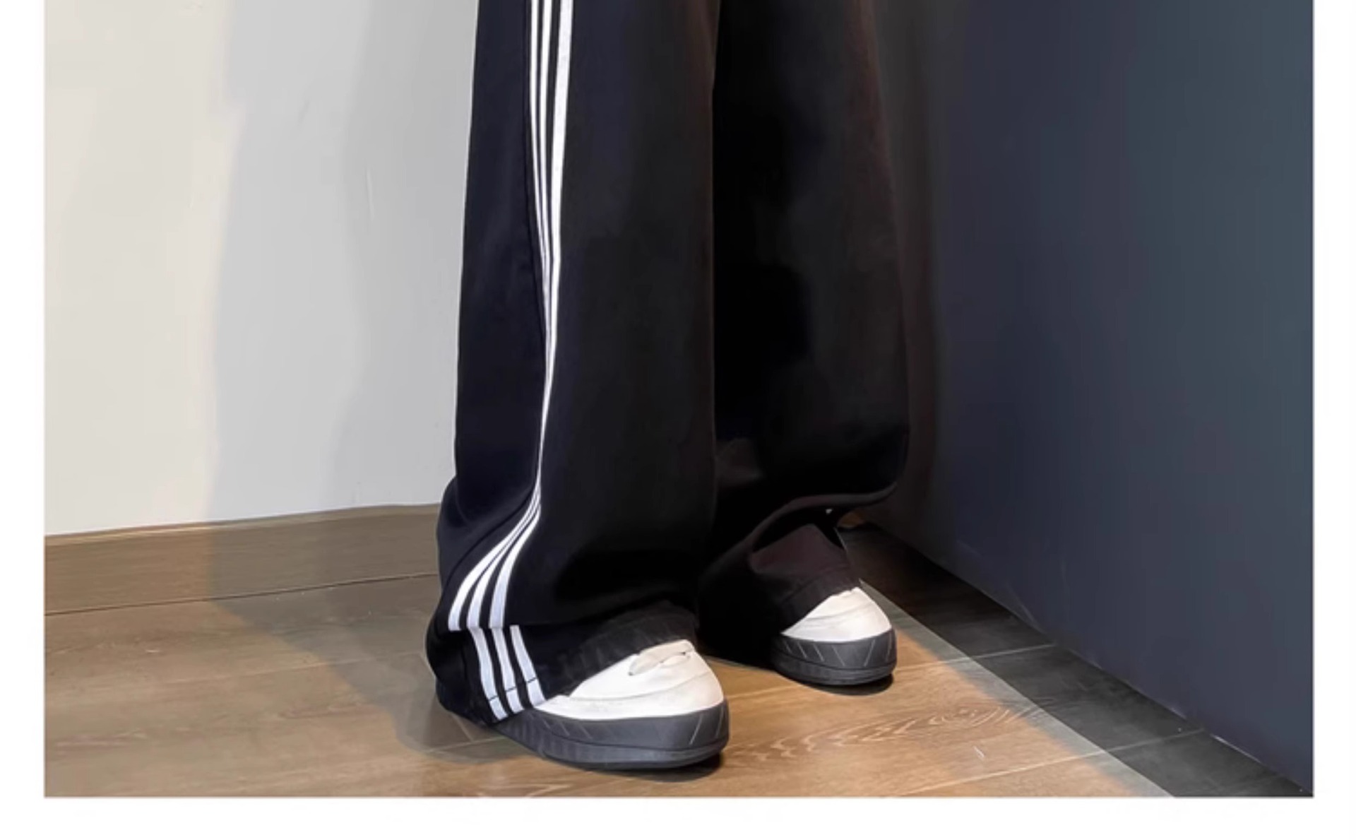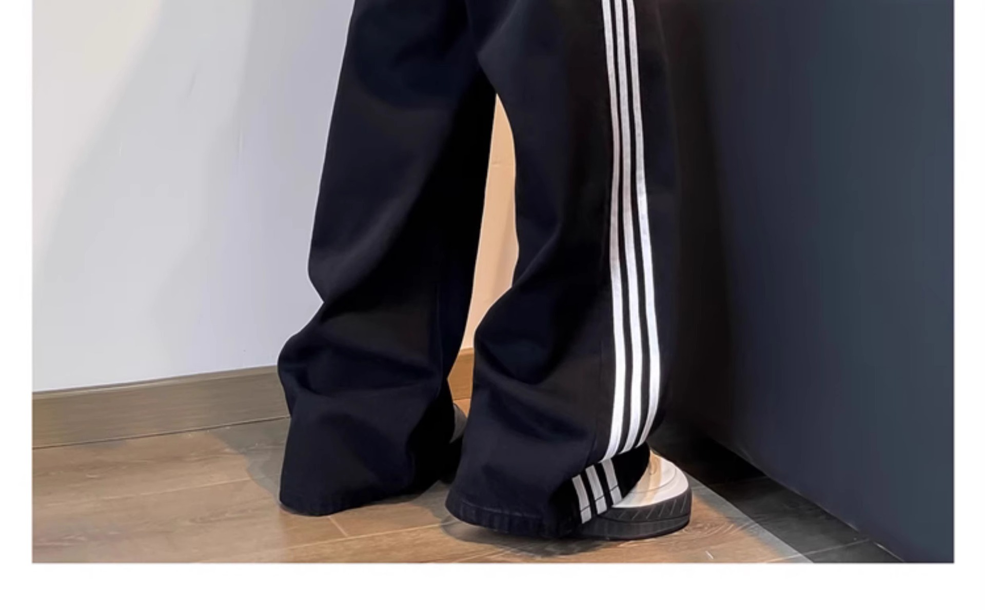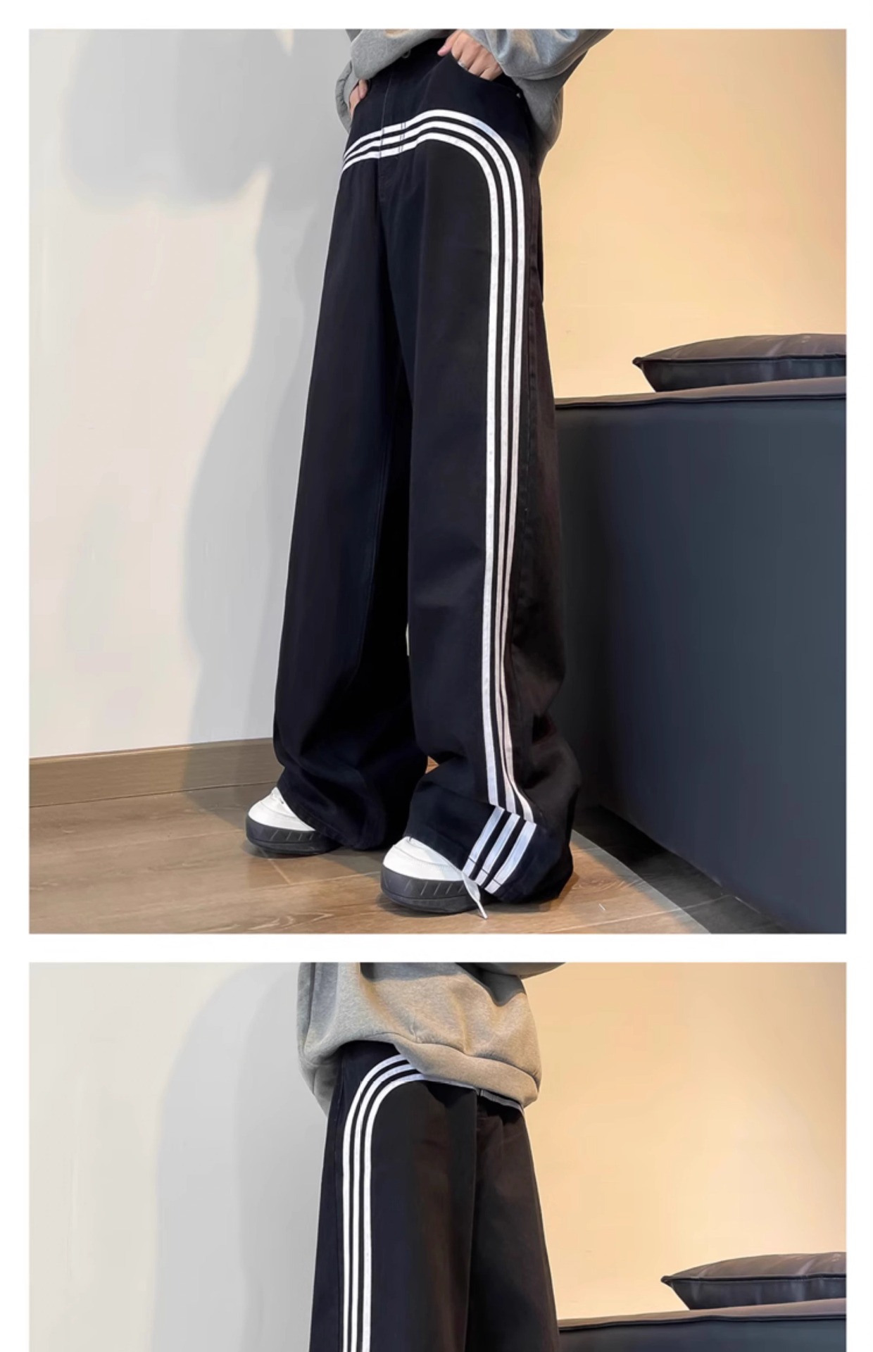 3 개의 바 스티칭 와이드 레그 청바지 남성용 아메리칸 스타일 바이브 하이 스트리트 레트로 틈새 세탁 캐주얼 롱 팬츠