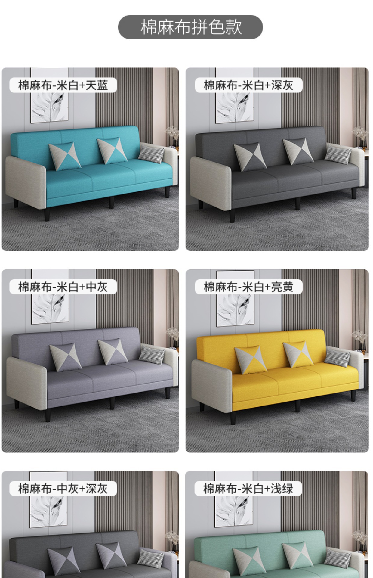 접이식 패브릭 소파, 소형 다기능 거실, 임대 아파트 소파 베드, 이중 목적 싱글 및 더블 소파