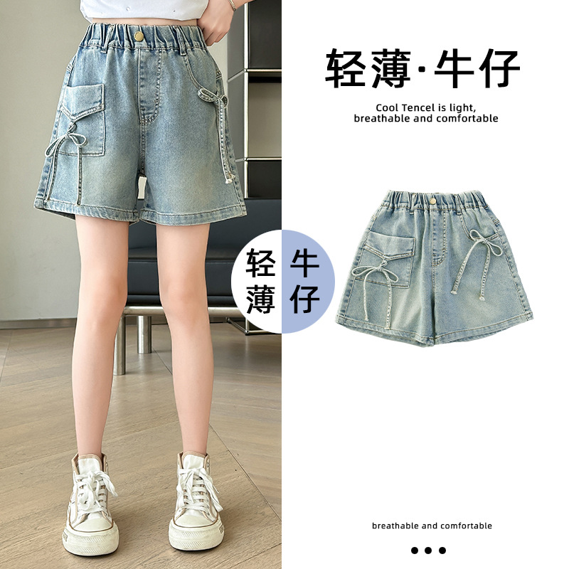 소녀 데님 반바지 여름 외부 어린이 얇은 새 도착 활 데님 반바지 중대형 어린이 서양식 여름 패션