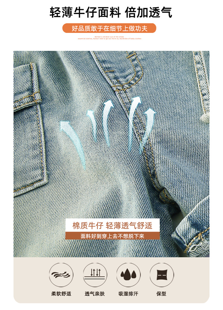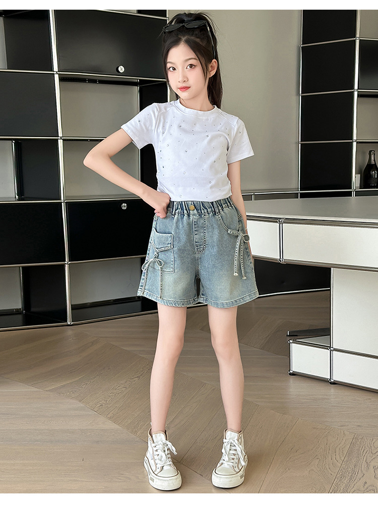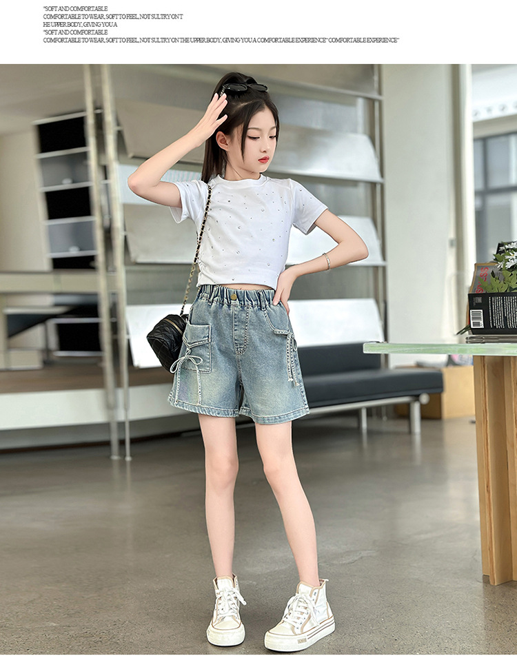 소녀 데님 반바지 여름 외부 어린이 얇은 새 도착 활 데님 반바지 중대형 어린이 서양식 여름 패션스토어 가기