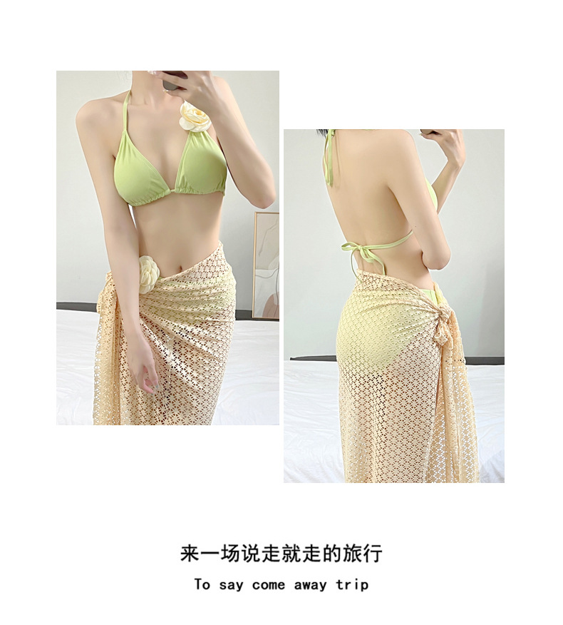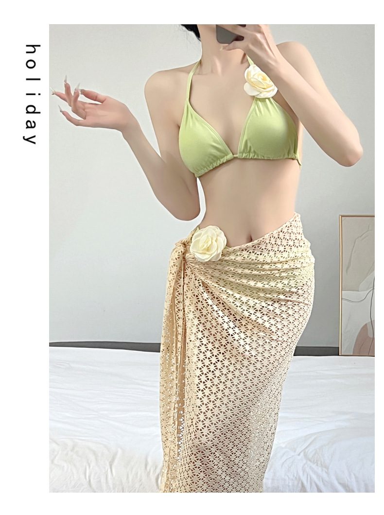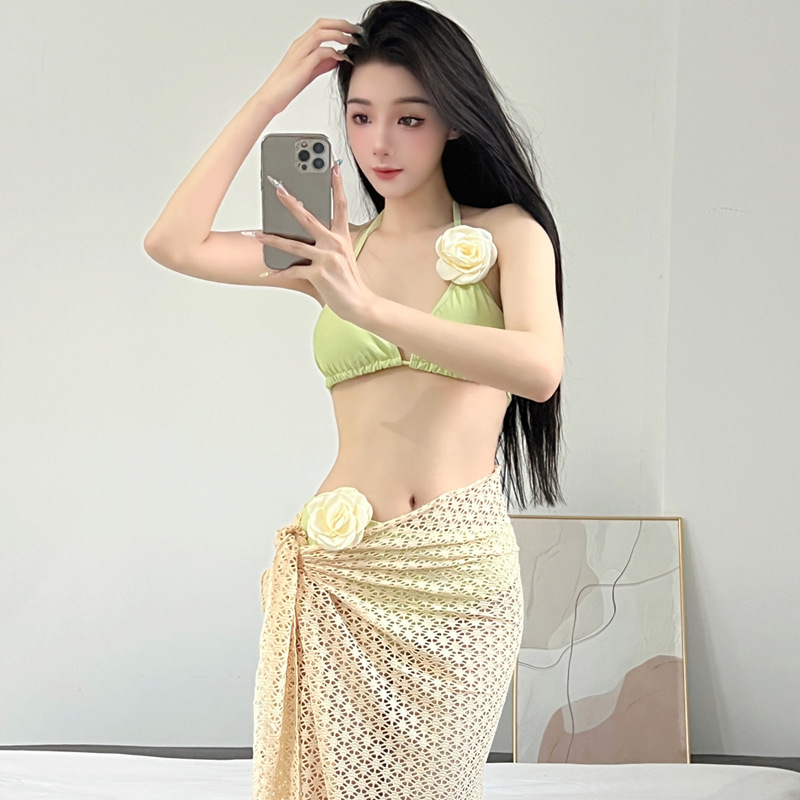 새로운 스타일 순수한 욕망 그린 화이트 스플릿 원피스 3 피스 비키니 수영복 여성의 섹시한 작은 가슴 온천