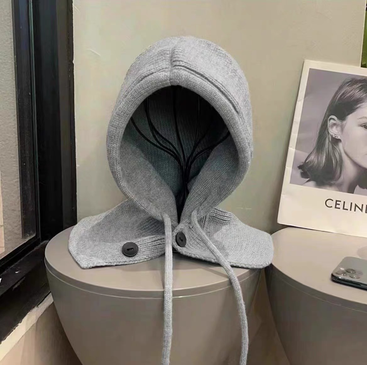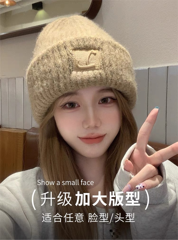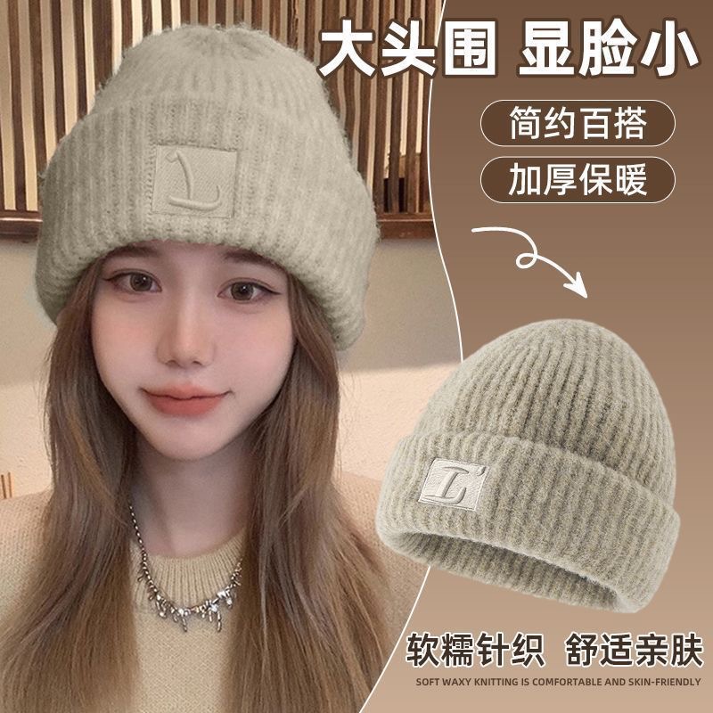 큰 머리 둘레 거친 울 모자 아이들의 가을과 겨울 느슨한 따뜻한 더미 차가운 모자 큰 얼굴 얼굴 작은 니트 귀 보호 모자스토어 가기