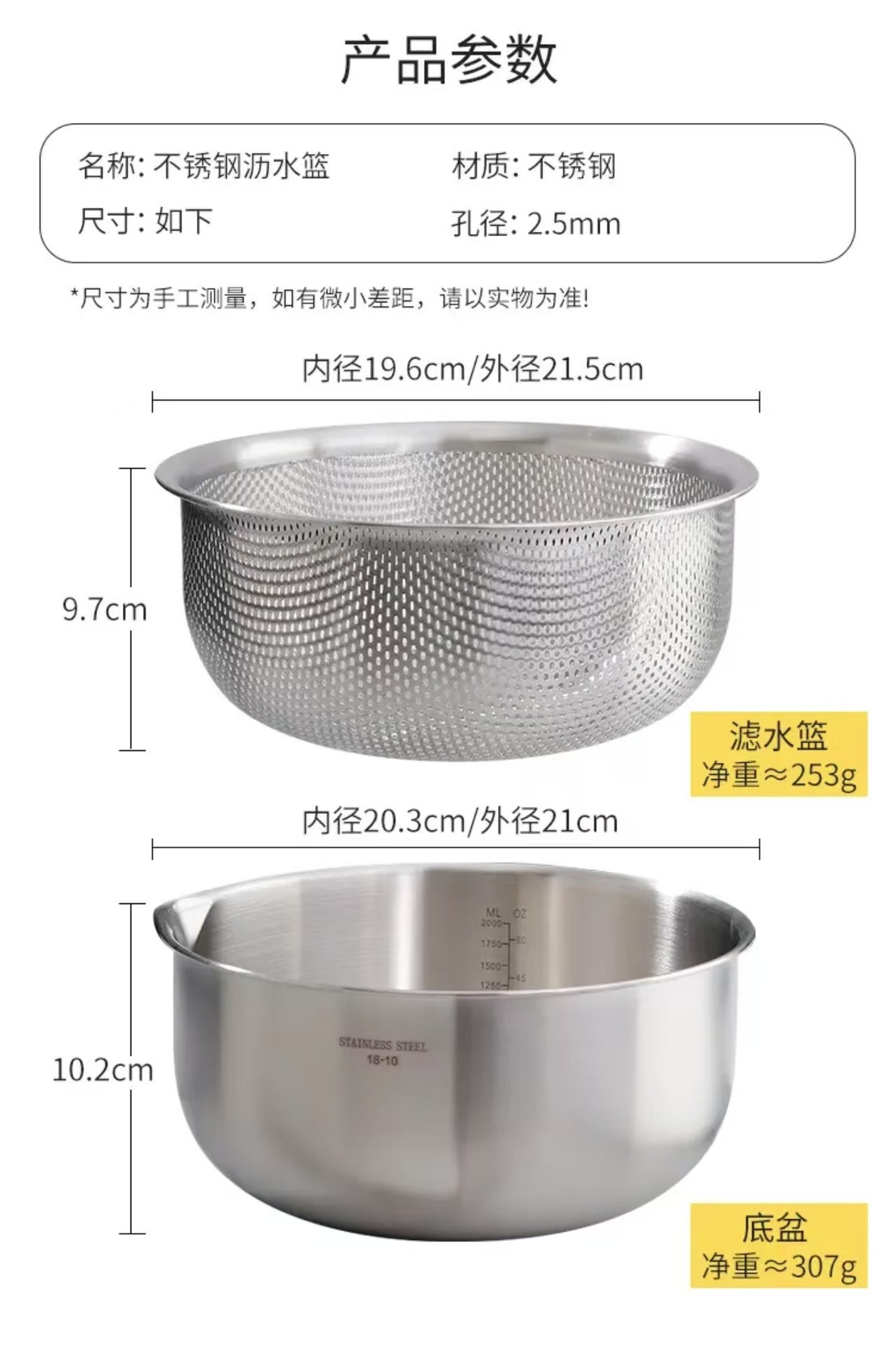 316 스테인레스 스틸 가정용 주방 배수 분지 과일 분지 필터 쌀 세척 둥근 두껍고 다기능 분지