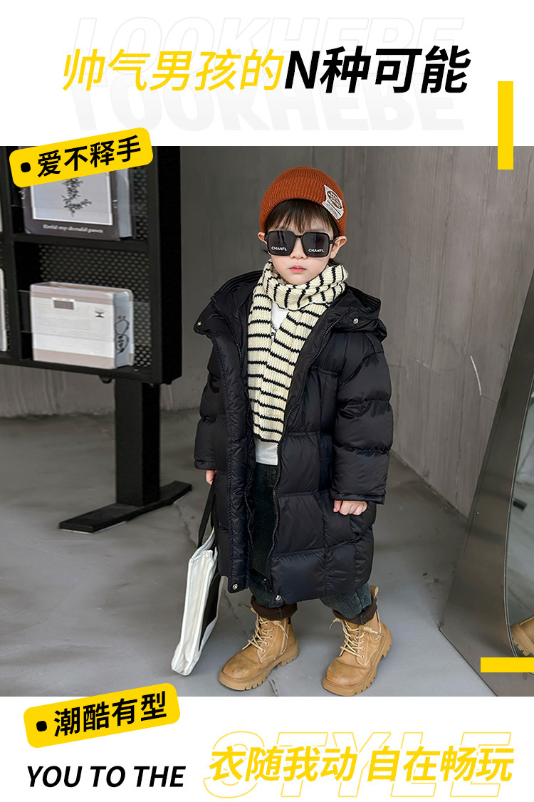 남아용 다운 재킷 겨울 어린이용 긴 화이트 덕다운 보온 코트 2025 신상 남아 겨울옷 두꺼운 옷스토어 가기