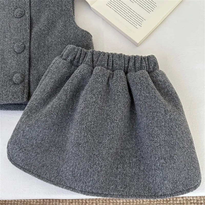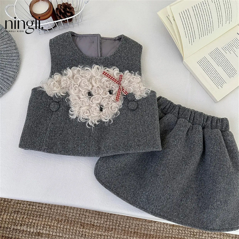 레몬 걸의 돌출 된 강아지 조끼 가을과 겨울 아기 소녀의 기모 3 피스 스웨터 웨이스트 코트 서양식 세트