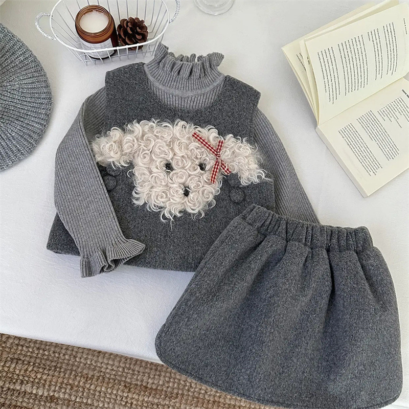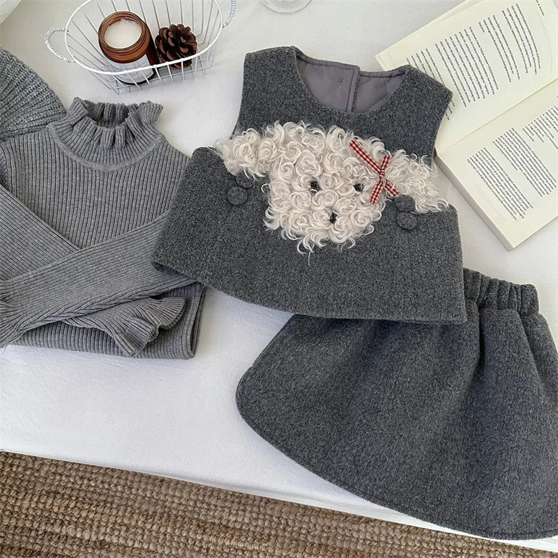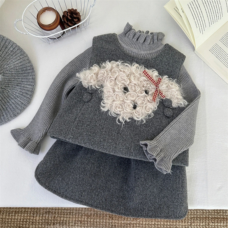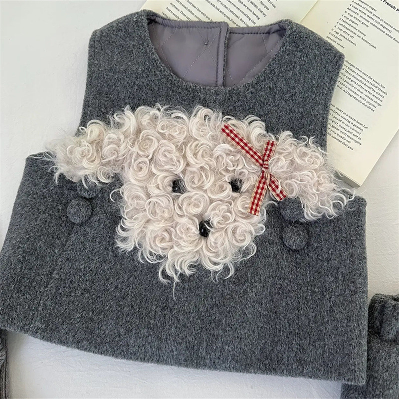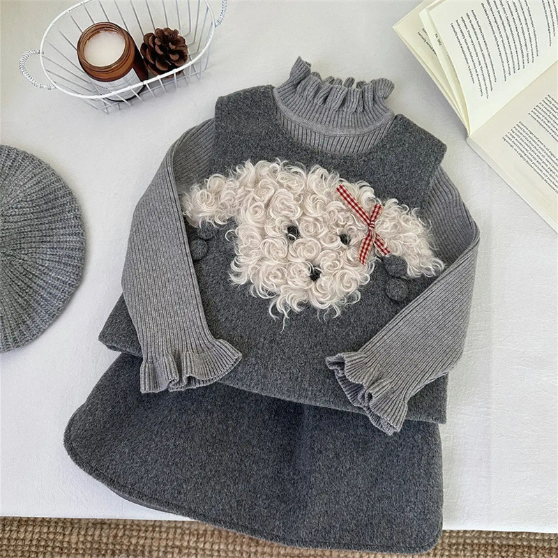 레몬 걸의 돌출 된 강아지 조끼 가을과 겨울 아기 소녀의 기모 3 피스 스웨터 웨이스트 코트 서양식 세트스토어 가기