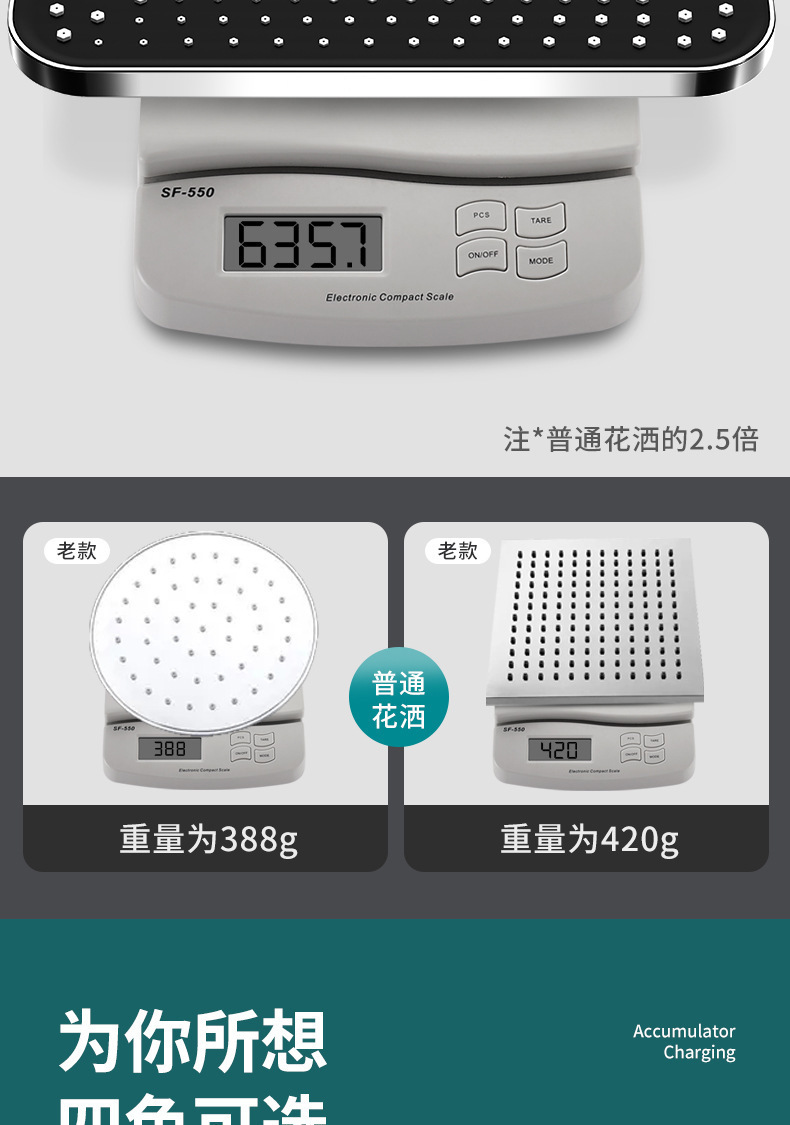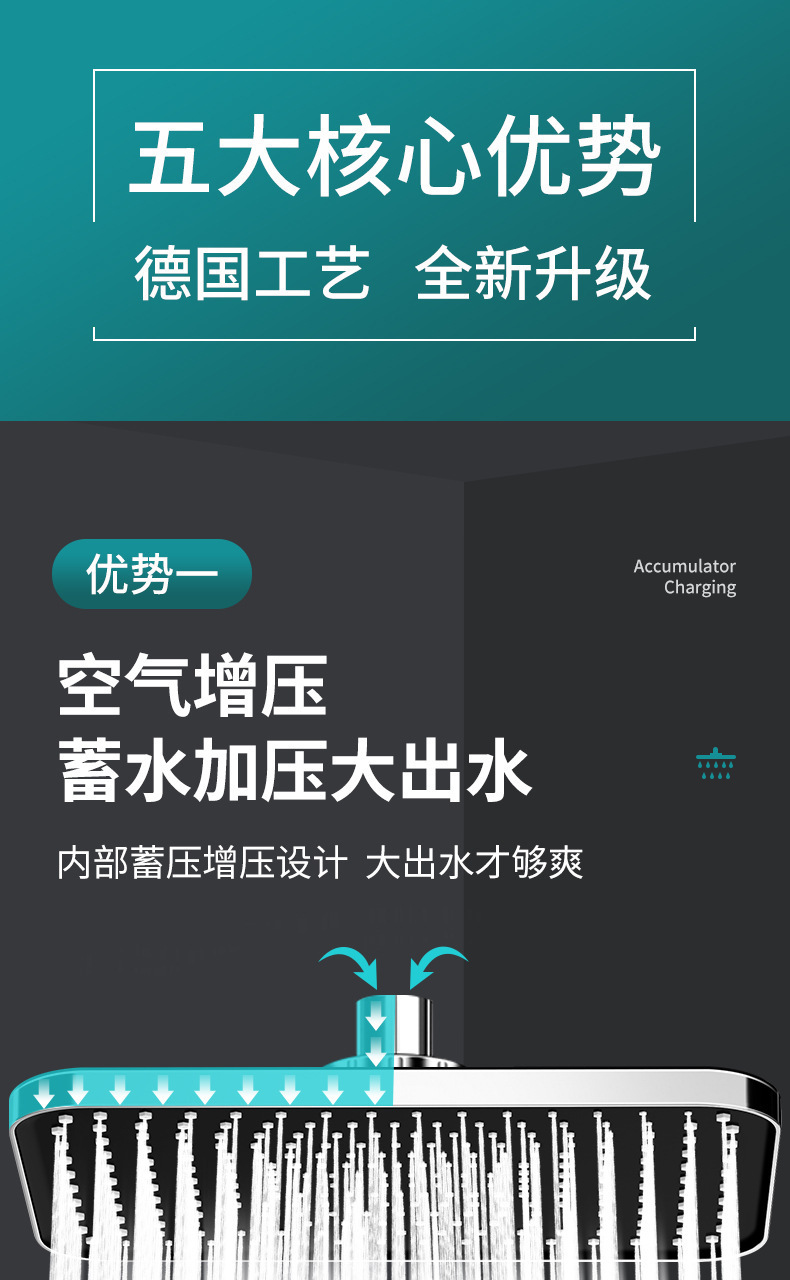 엄선된 샤워헤드, 고압 샤워, 대형 샤워헤드, 가압식 상부 분사, 가정용 샤워기 세트