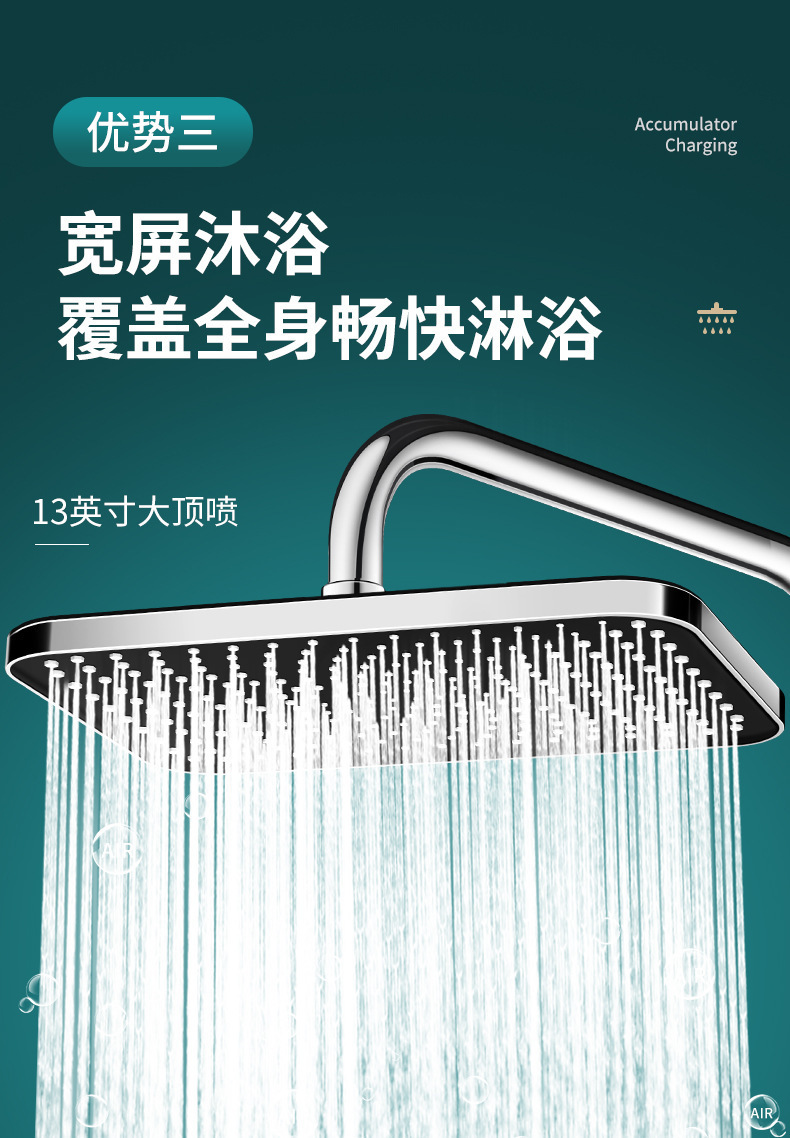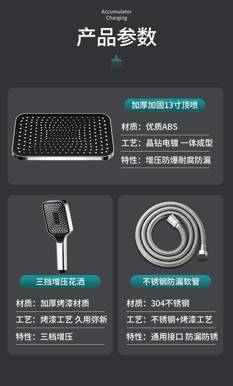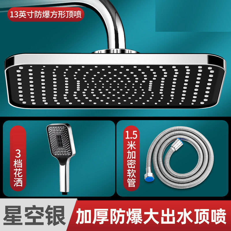 • 전기도금 실버 - 13inch [스퀘어 탑 스프레이] + 3스톱 핸드 스프레이 + 1.5m 두꺼운 암호화 호스