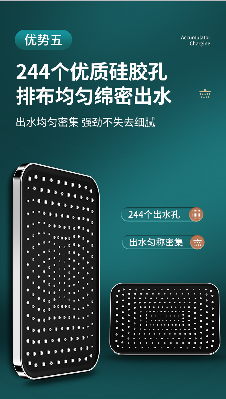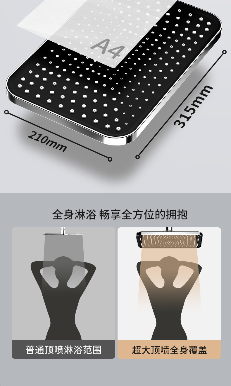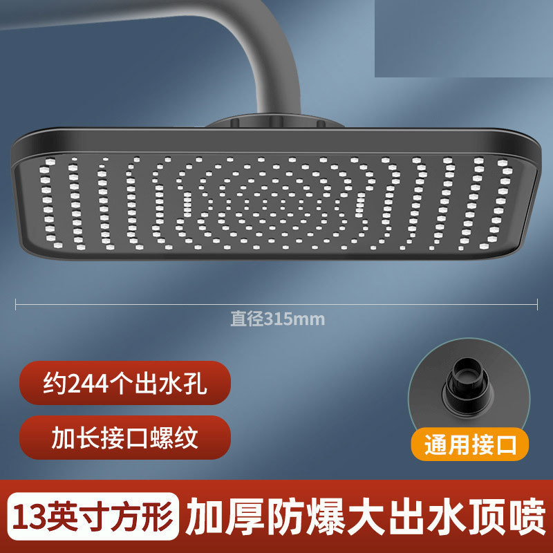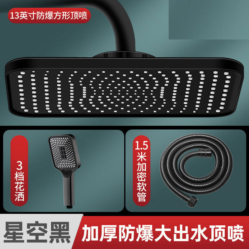 • 매직나이트 블랙 - 13inch [스퀘어 탑 스프레이] + 샤워 핸드 스프레이 + 1.5m 두꺼운 암호화 호스
