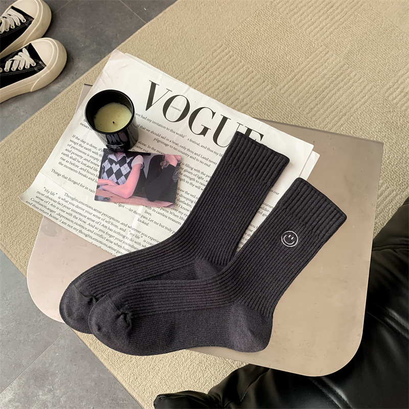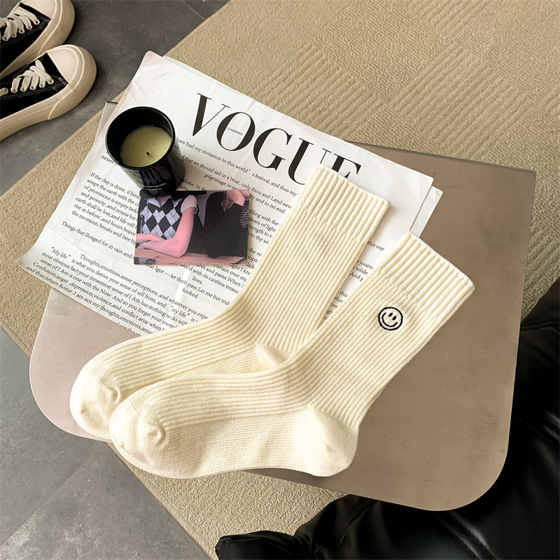 2024 양말 여성의 가을과 겨울 새로운 부드러운 왁스 핏 웃는 얼굴 자수 고급 원사 염색 줄무늬 양모 양말 여성용 양말스토어 가기