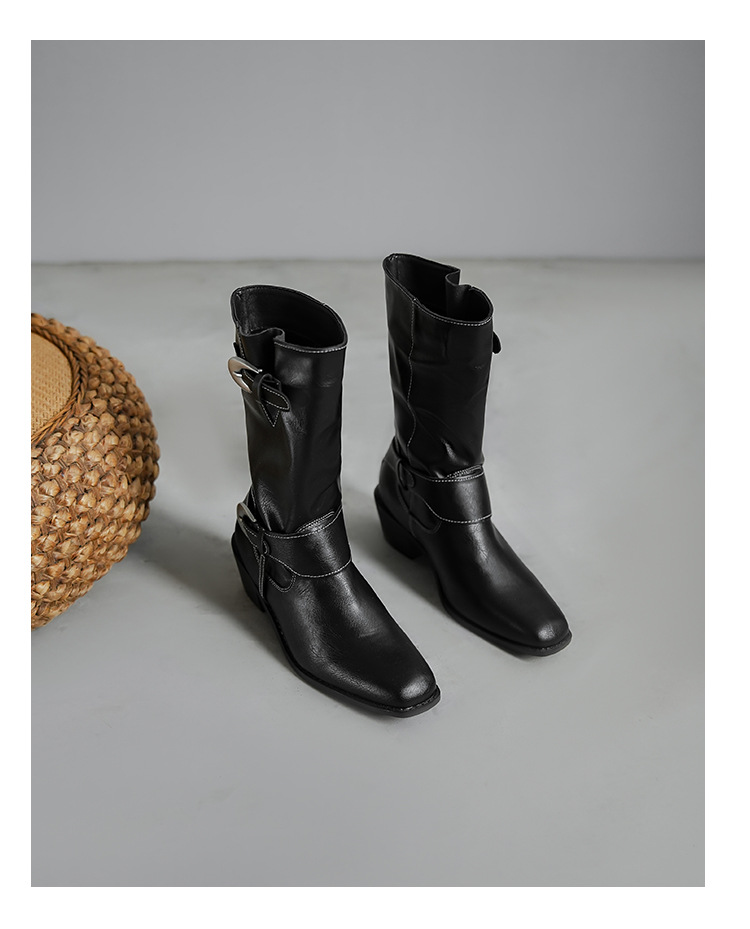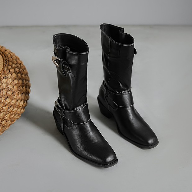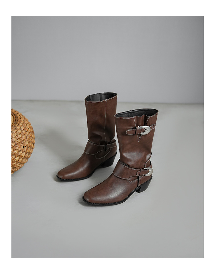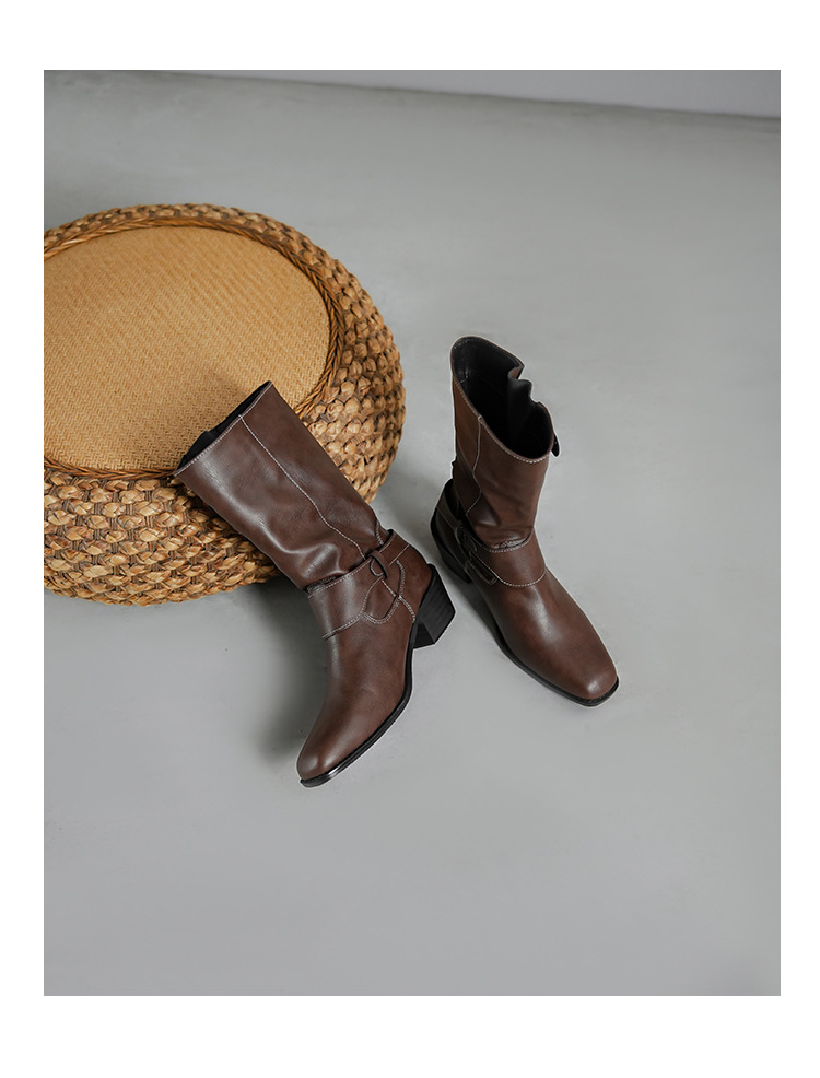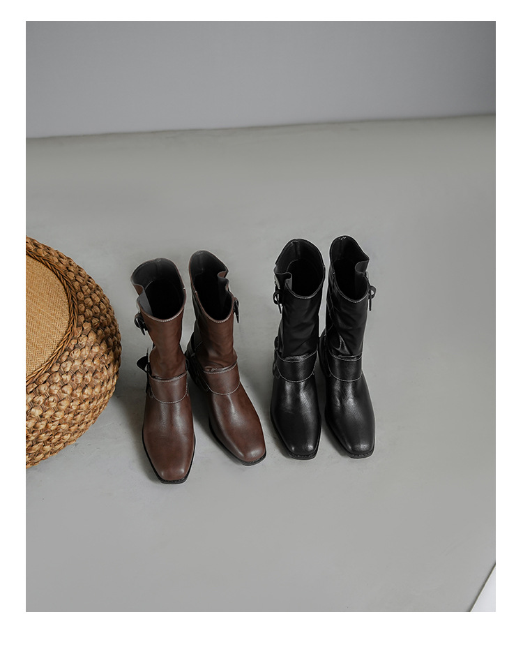 소가죽 버전~수인인과 같은 스타일의 영국식 사각코 금속 버클 두꺼운 굽 웨스턴 숏부츠 여성용 첼시 마틴 부츠스토어 가기