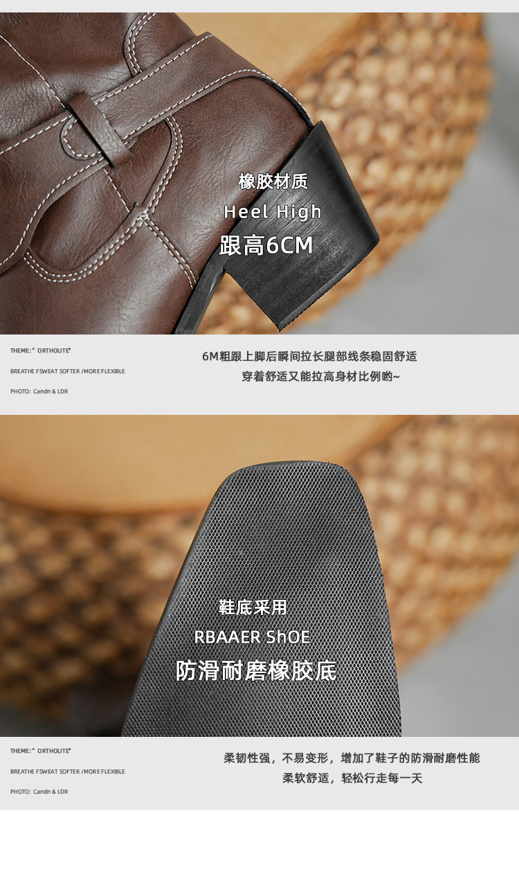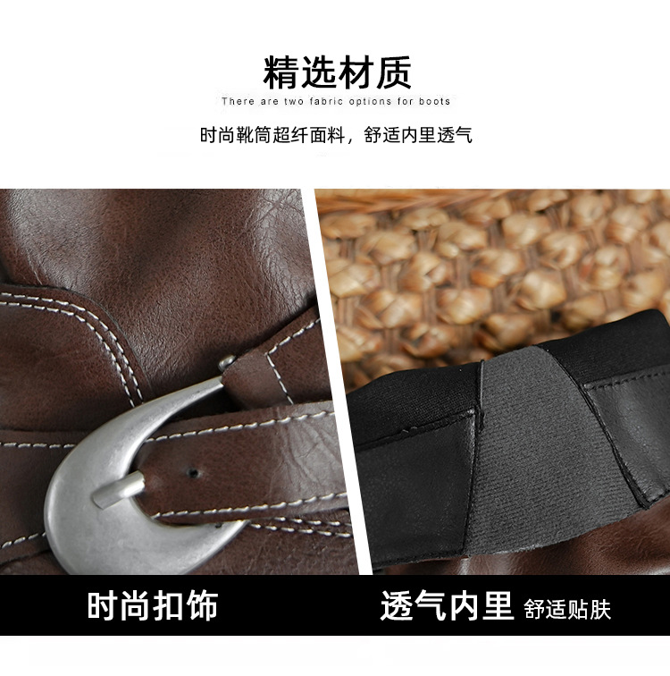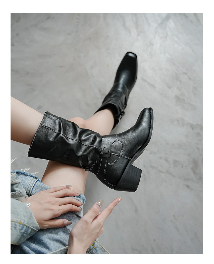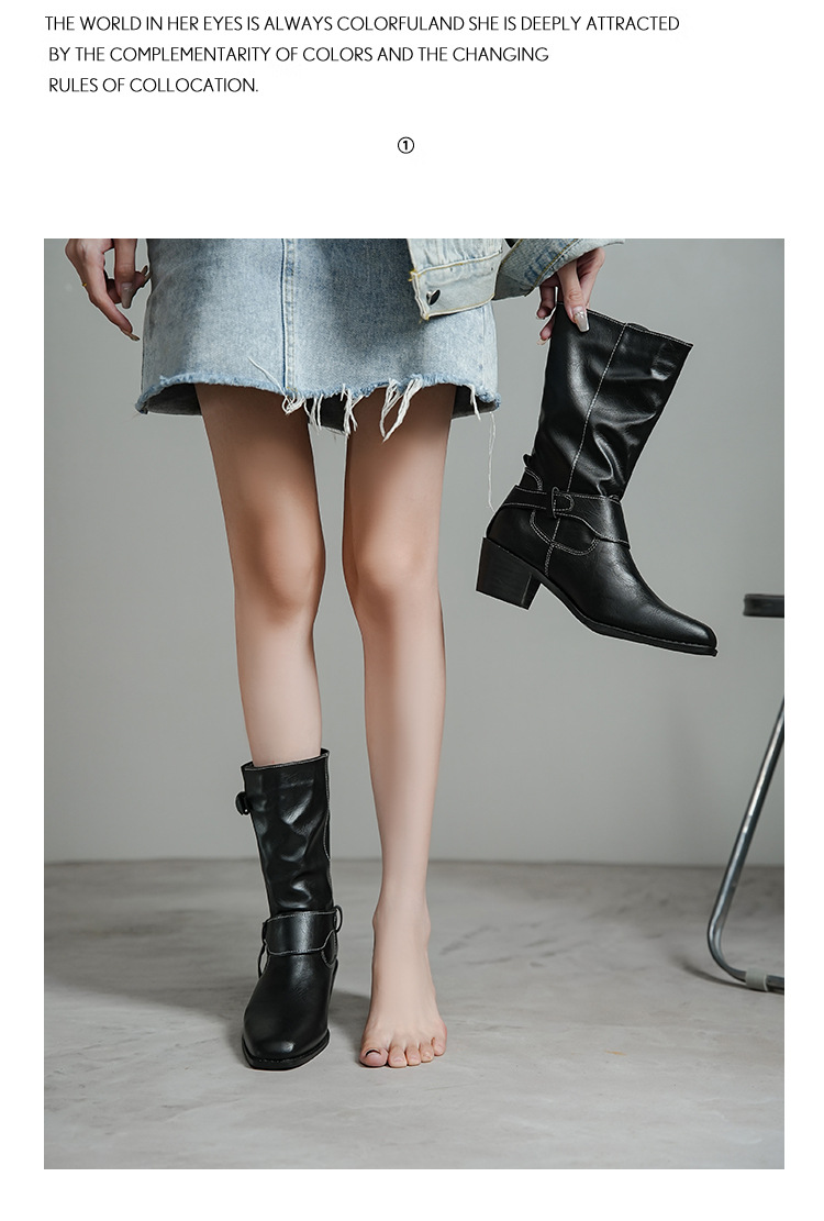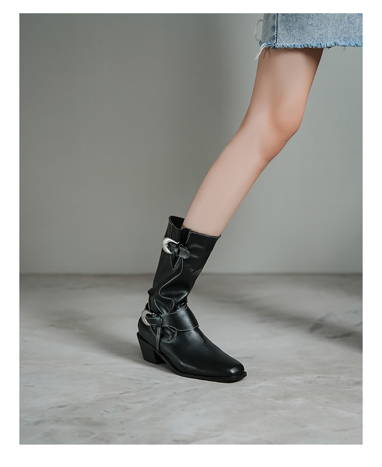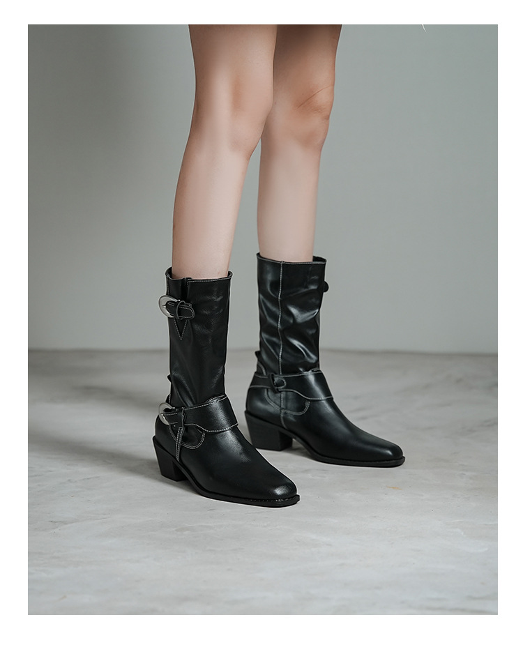 소가죽 버전~수인인과 같은 스타일의 영국식 사각코 금속 버클 두꺼운 굽 웨스턴 숏부츠 여성용 첼시 마틴 부츠