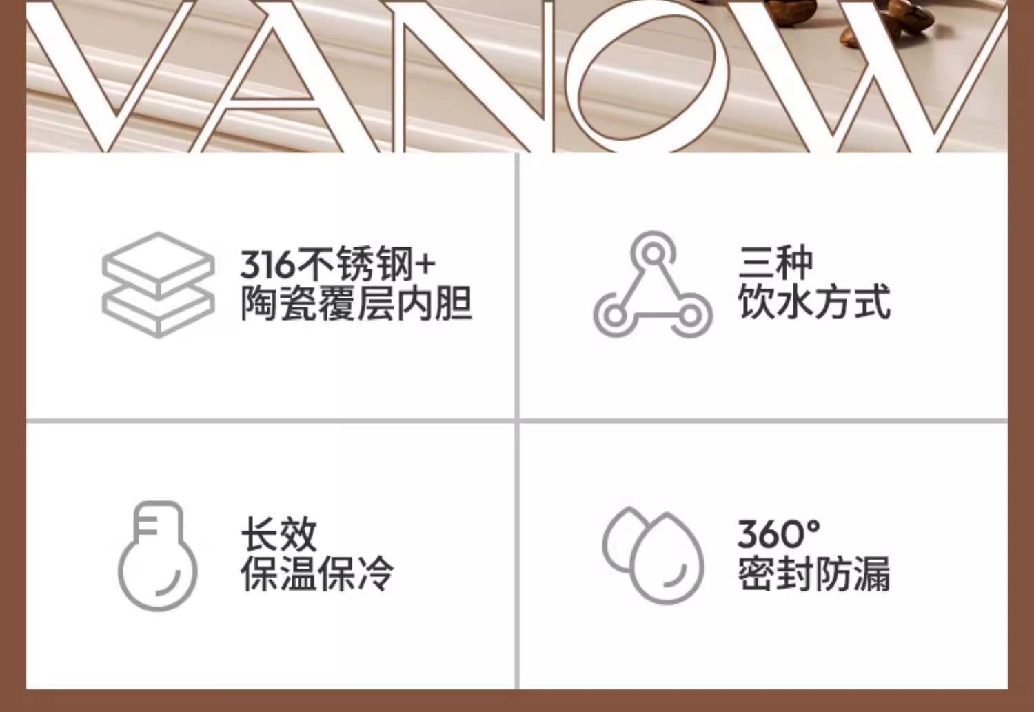 Vanow Medal 커피 컵 보온병 컵 세라믹 라이너 여자 높은 색상 가치 새로운 휴대용 밀짚 동반 물 컵
